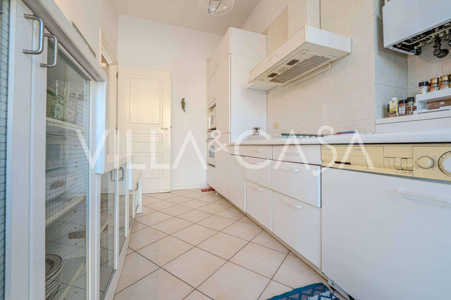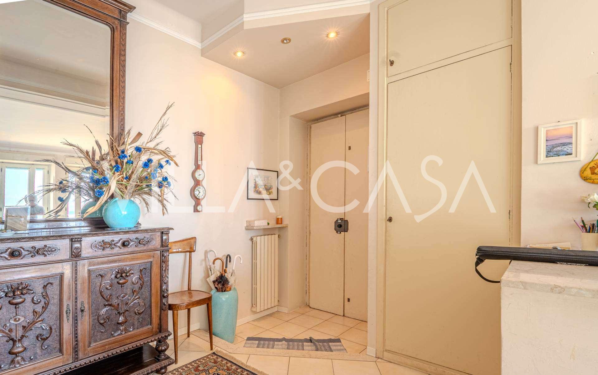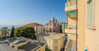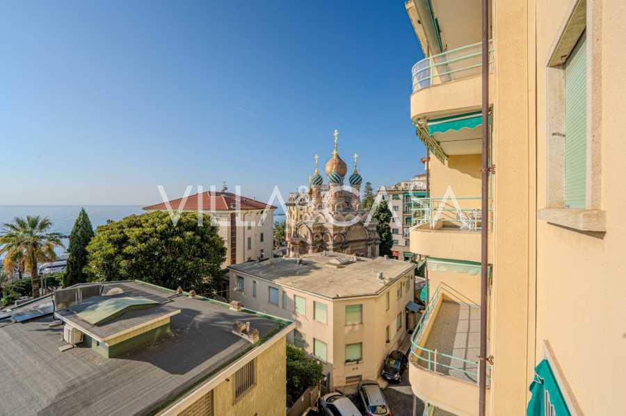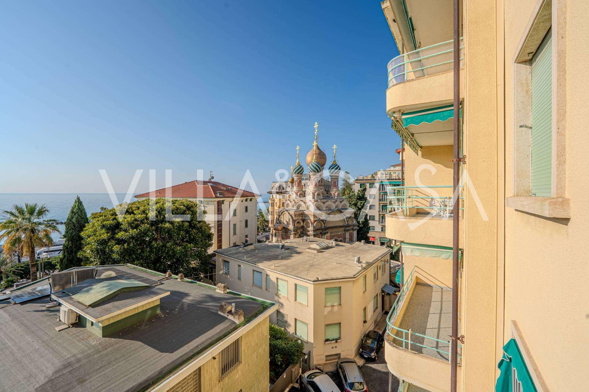 広々とした4部屋のアパートメントは、サンレモの中心に位置し、美しいロシア教会の向かいにある高級住宅複合施設内にあります。アパートメントは104平方メートルを占め、4階に位置しており、海とロシア教会のユニークな建築を眺めることができます。