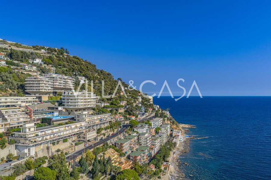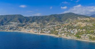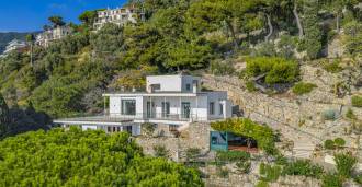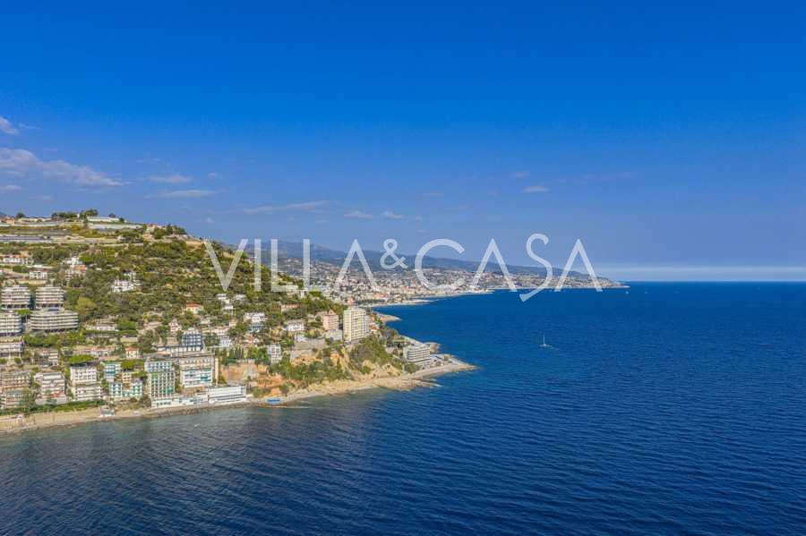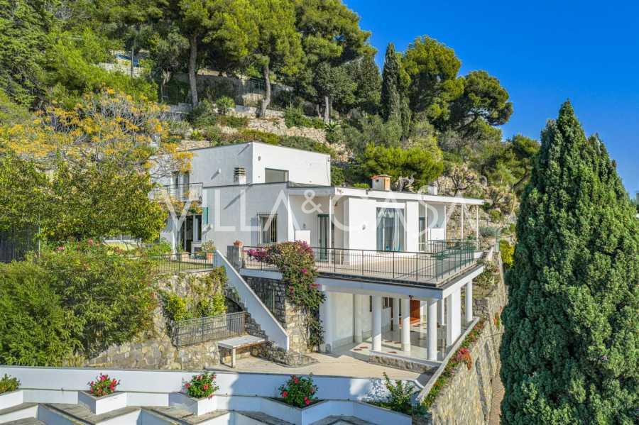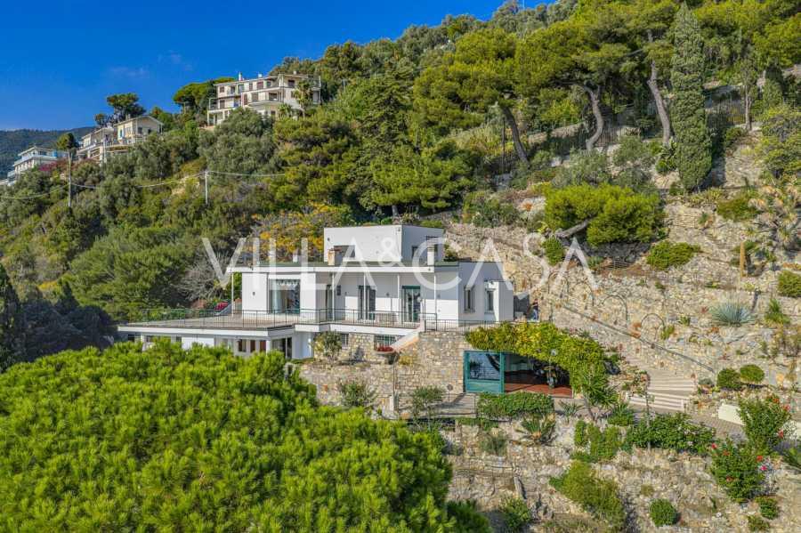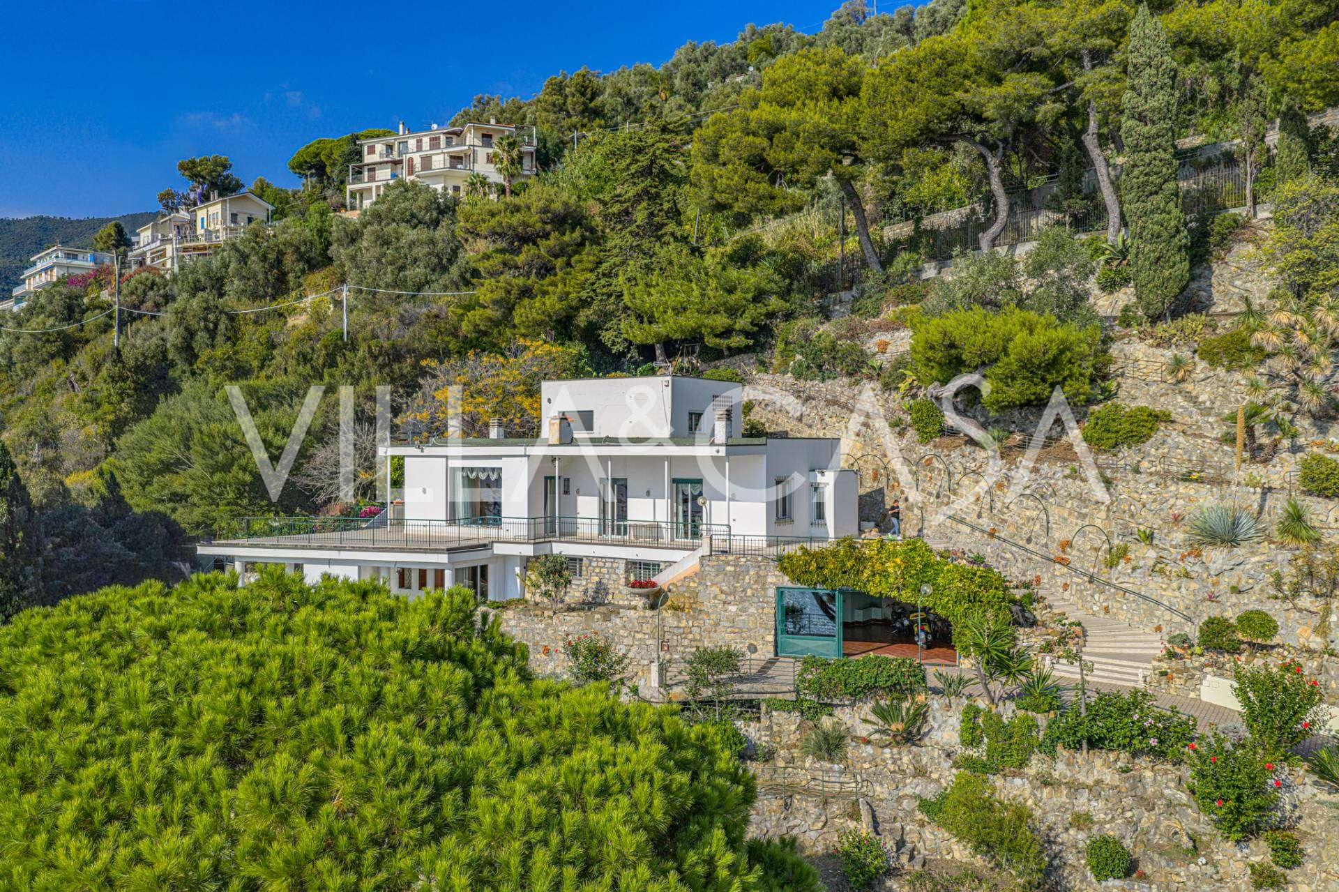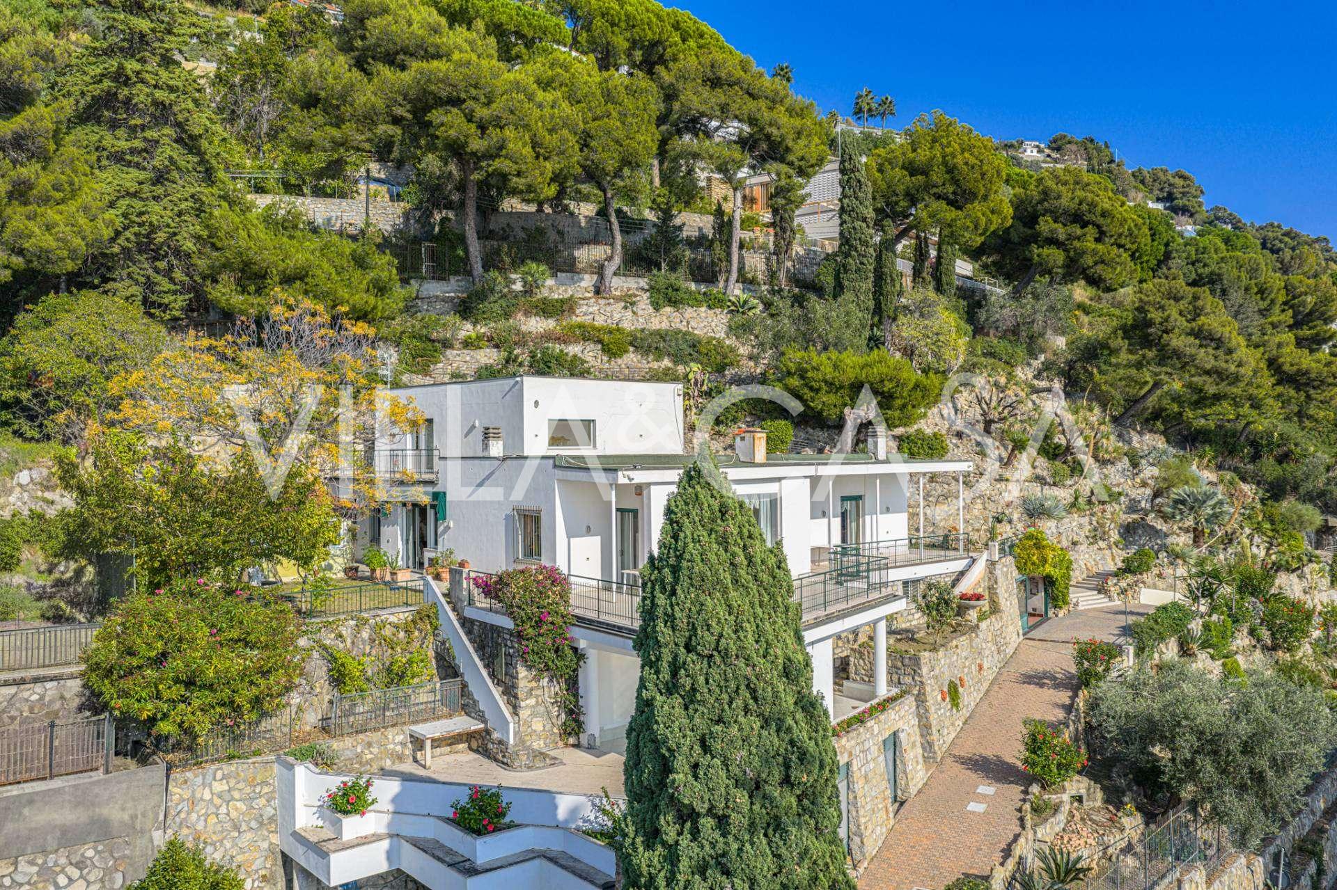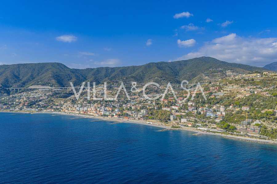 高台に位置するため、邸宅からはリグリア海岸と無限の水平線を望む、素晴らしいパノラマビューを楽しむことができます。