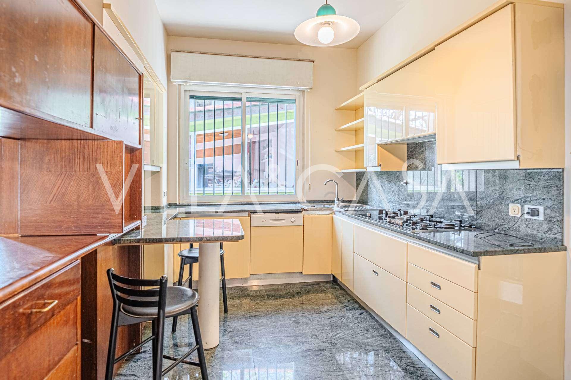 邸宅は、細部に最大限の注意を払って作られたユニークな地中海庭園に囲まれています。珍しい種類の木々や低木が生い茂り、エレガントな池と手入れの行き届いた小道が雰囲気を引き立てます。便利なアクセス、完全なプライバシー、ビーチ、パーク、市街地のインフラへの近さが、このヴィラをリグリア海岸の真珠たらしめています。