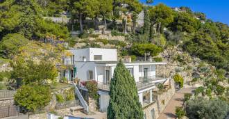 海を望む広々としたリビングルーム、独立したキッチン、貯蔵室、ワインセラー、3つの補助部屋、2台分のガレージ。