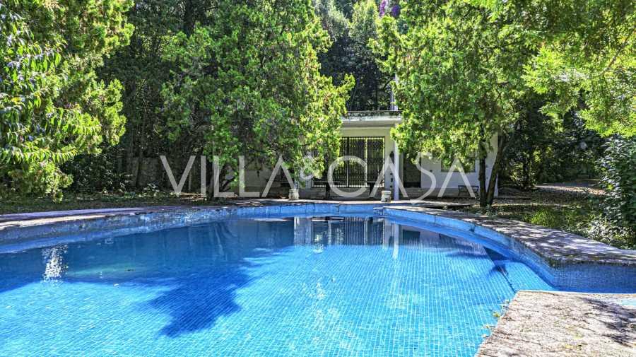 19世紀末に建てられたエレガントなヴィラが売りに出されています。このヴィラは、植民地風、クラシック、モダンなスタイルを巧みに組み合わせた折衷主義の建築が特徴です。4000平方メートル以上の公園エリアに位置し、貴重な植物が植えられています。敷地内にはプールと約100平方メートルのゲストハウスがあります。
