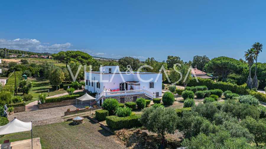 サンタ・マリネッラの海岸の中心に位置し、海から数歩のところにあるこの洗練された邸宅は、約560平方メートルの独立したヴィラで、約6,000平方メートルのプライベートパークに囲まれ、海の壮大なパノラマビューを楽しむことができます。