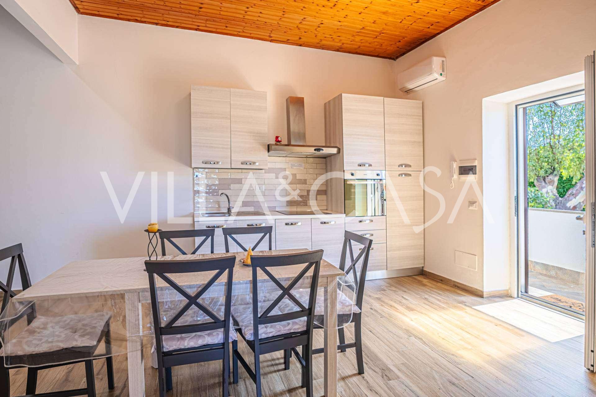 邸宅を補完する補助建物:バスルーム、ミニキッチン、薪ストーブ、ランドリー、倉庫を備えた独立した建物、約24平方メートルの独立したアパートメントには、専用の寝室、バスルーム、ミニキッチンがあります。約100平方メートルの木製ガゼボがあり、海の美しい景色を楽しむことができます。アパートメントはプライバシーが保たれ、日当たりが良く、自動ゲート付きの2つの出入口があり、完璧な状態で、完全に家具が備え付けられ、空調と太陽光発電システムが搭載されています。