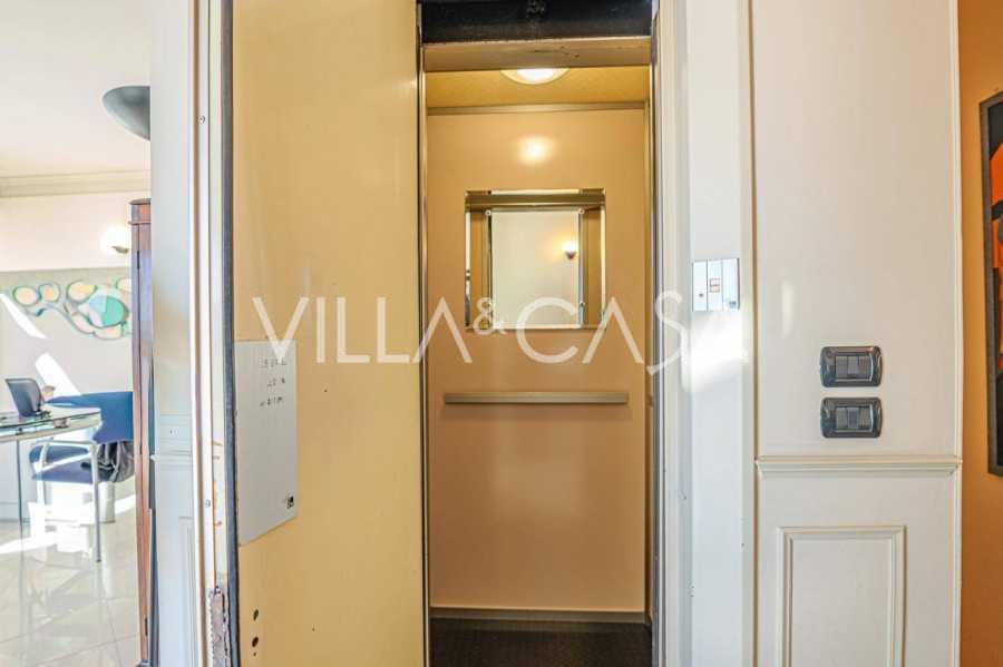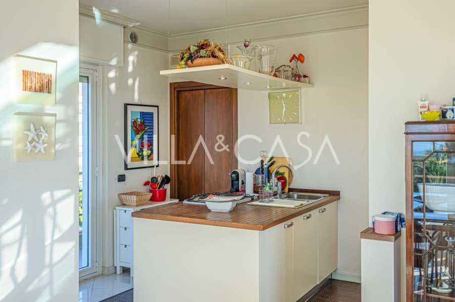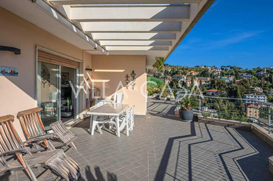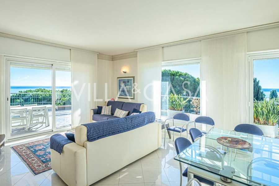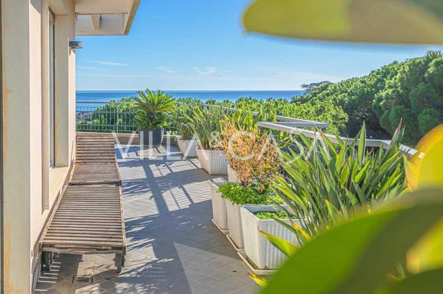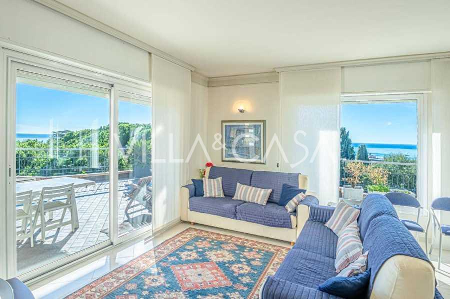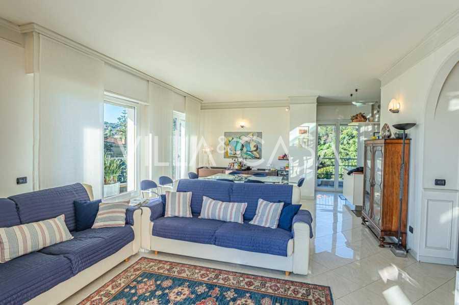 サンレモで、海岸から徒歩わずか10分の場所に、約146平方メートルのペントハウスが販売されています。このアパートメントはエレベーター付きの建物の5階に位置し、以下の設備が含まれています: