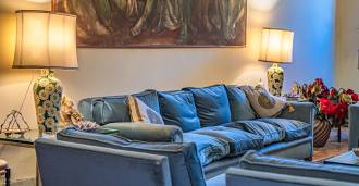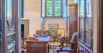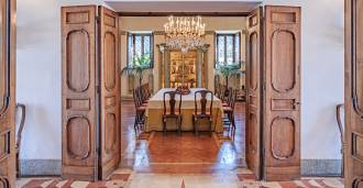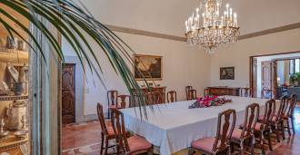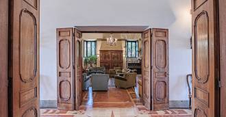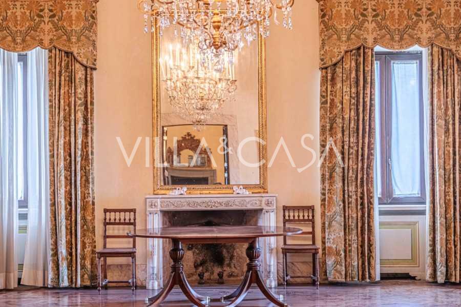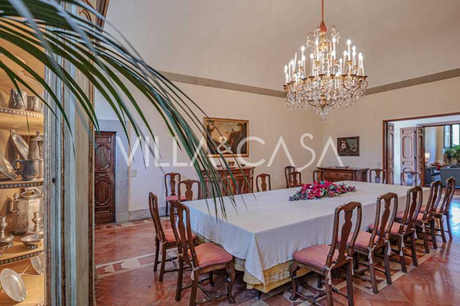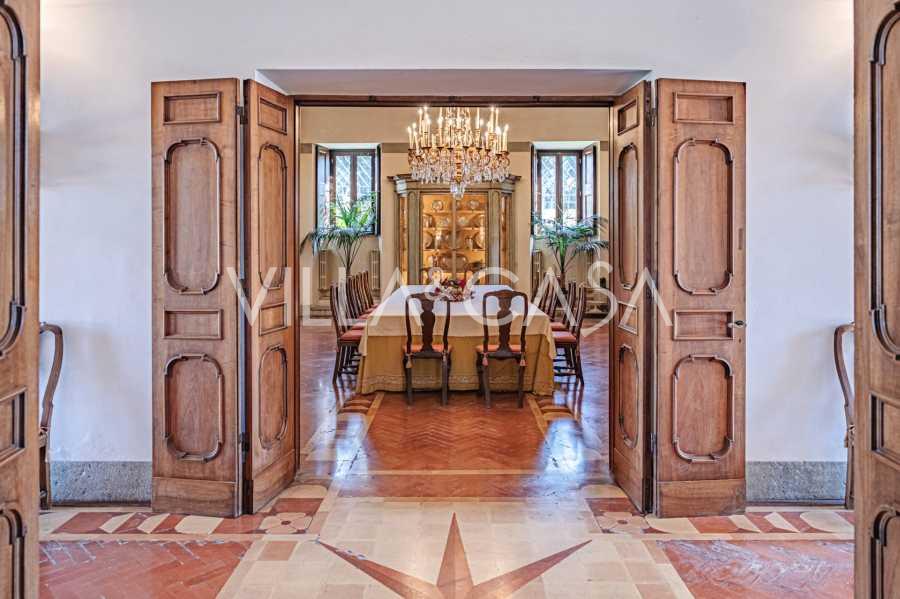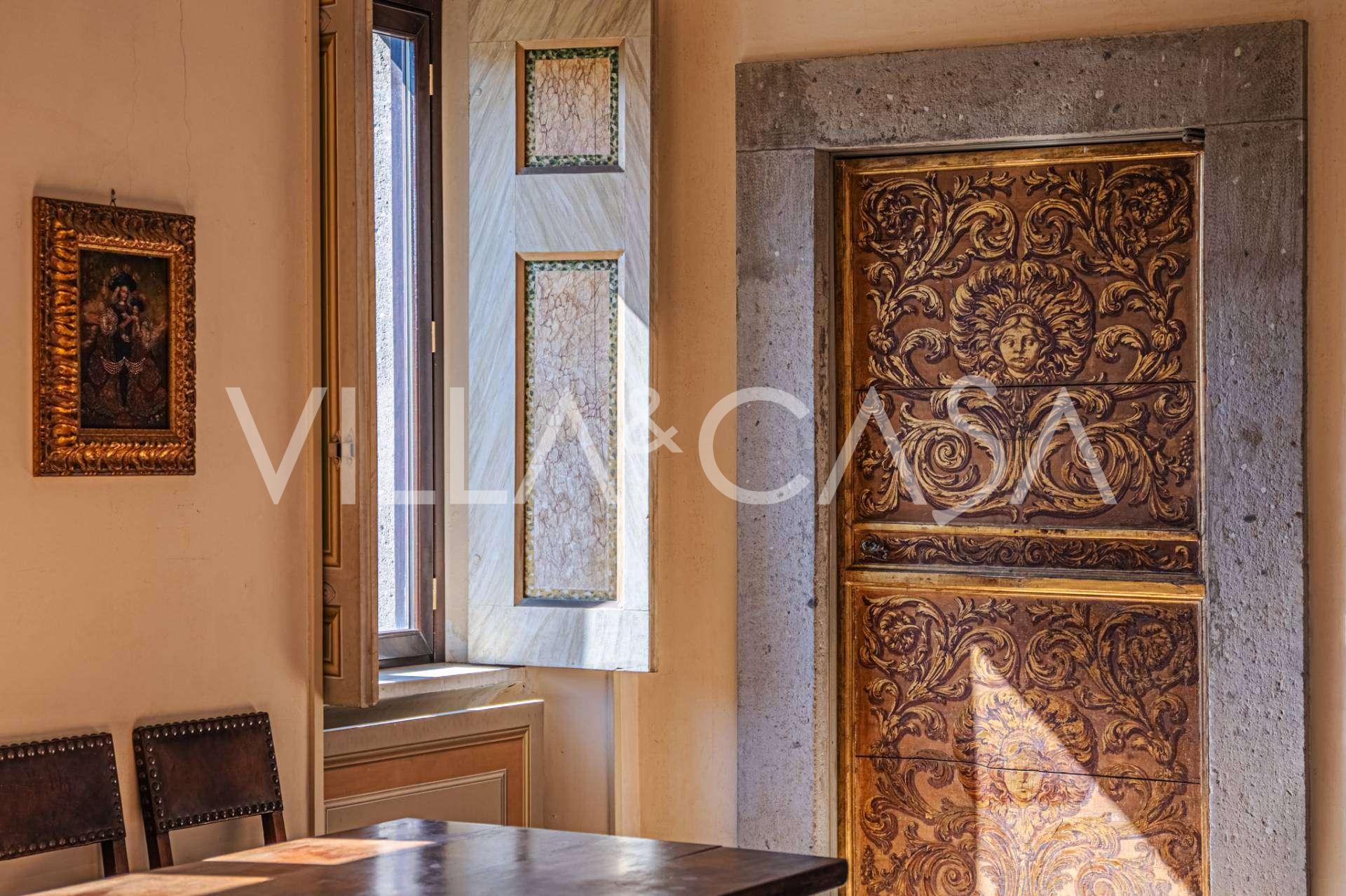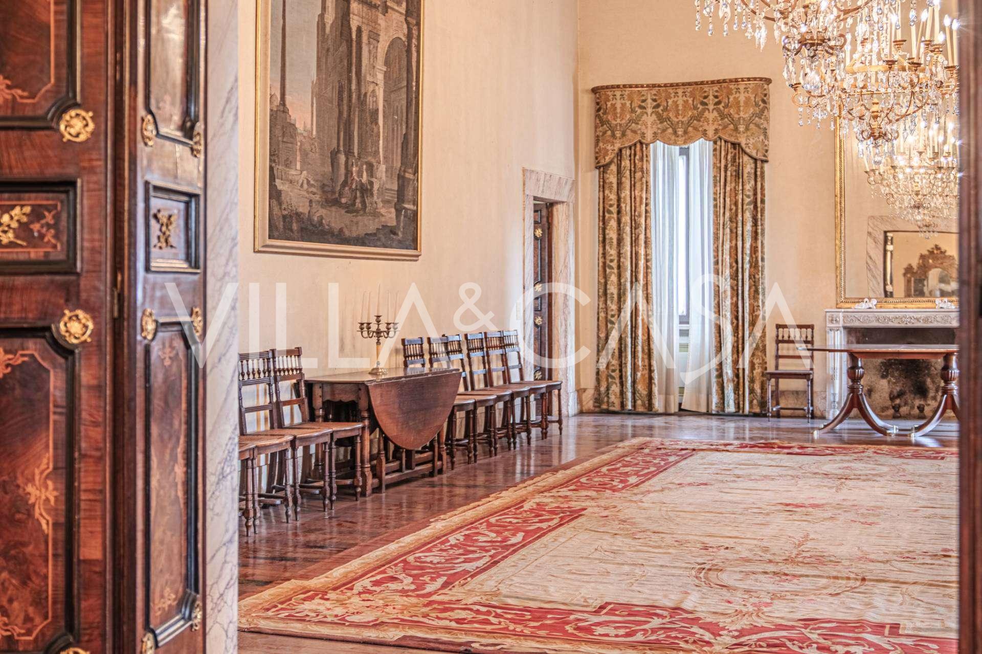 1階には広々とした応接室、書斎、寝室、3つのバスルーム、洗練されたダイニングルーム、大きなキッチンがあり、下の階には宴会用の部屋があり、正式なイベントに最適です。