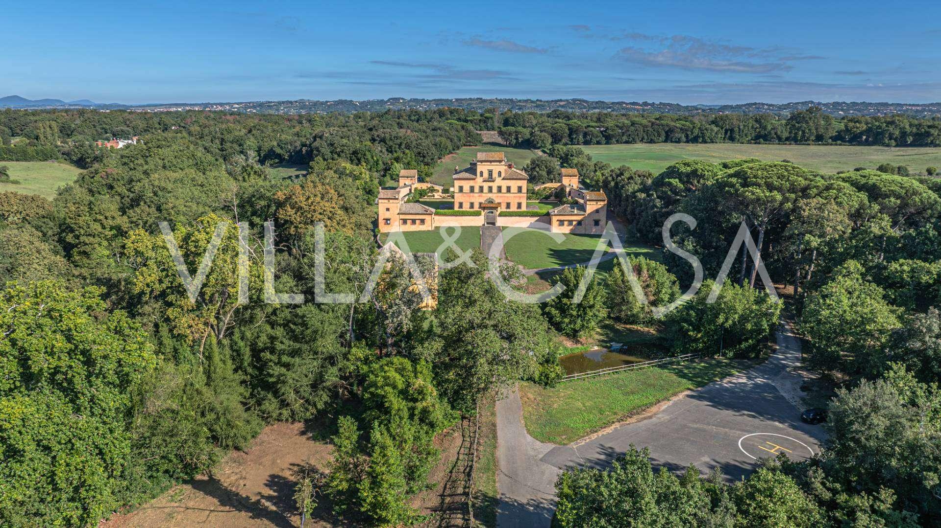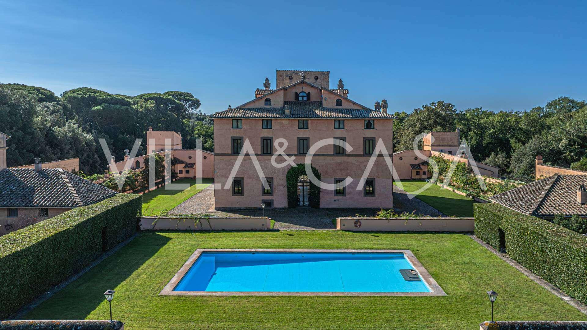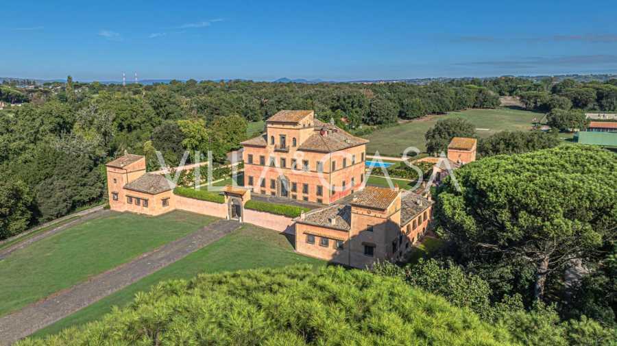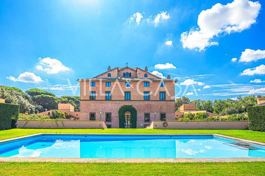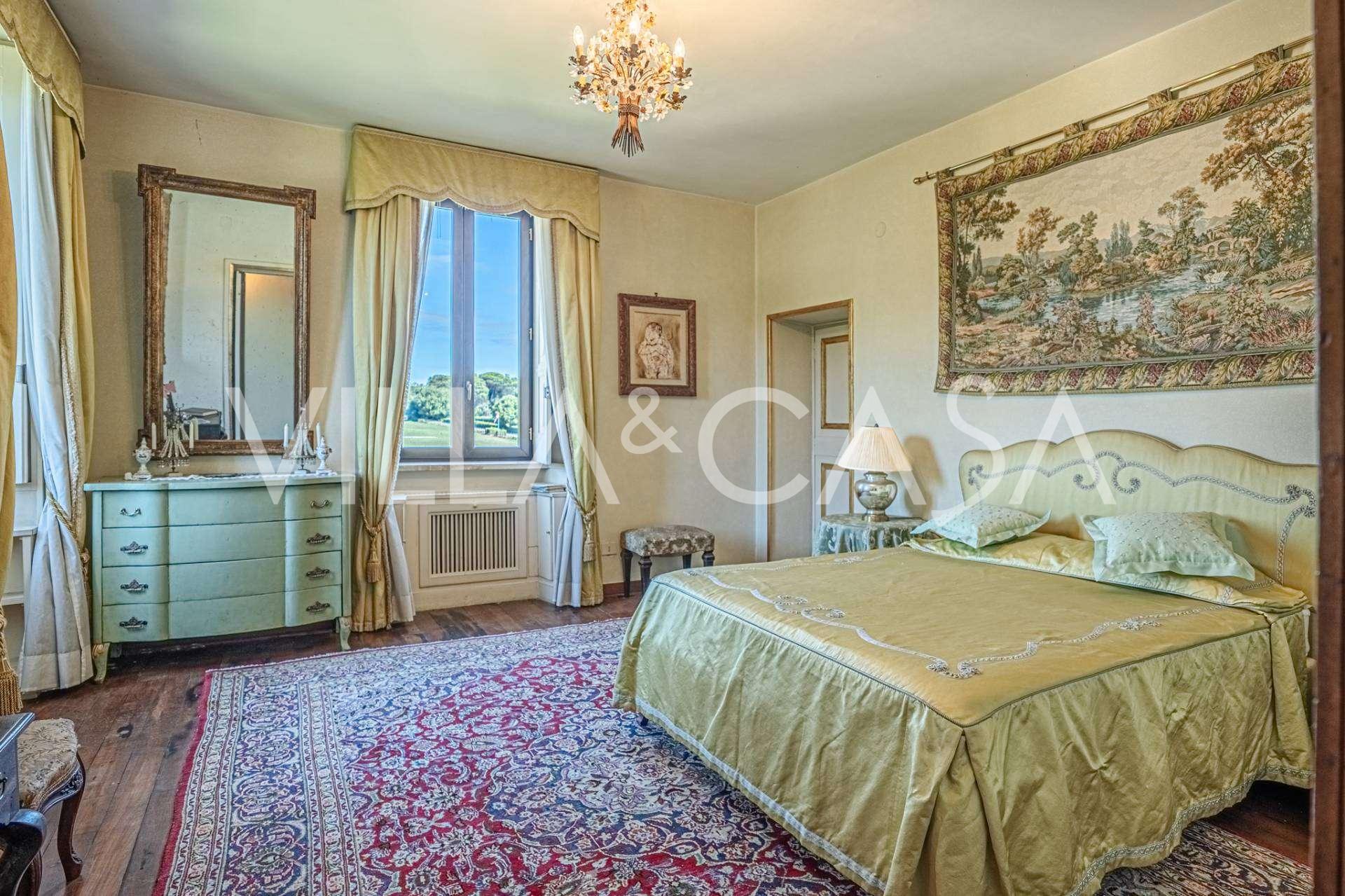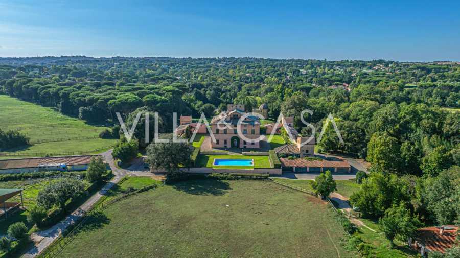 ローマから北へわずか20キロに位置するこの城は、30ヘクタールの手入れの行き届いた草原と古代の森林に囲まれ、自然との完全な調和と隠遁の雰囲気を作り出しています。ここでは、伝説の競走馬リボットが生まれました。馬術施設は国際的な最高水準で整備されており、23と25の馬房を持つ2つの厩舎には、鞍部屋、馬の手入れゾーン、スタッフ用の快適なアパートメントが備わっています。施設内には、屋内馬場、屋内カルーセル、広大な放牧地があり、トレーニングや競技に理想的です。城はヨーロッパで最も権威のあるゴルフクラブの一つに隣接しており、専用のヘリポートもあります。敷地内には古代エトルリアの洞窟があり、特別な魅力と歴史的価値を与えています。