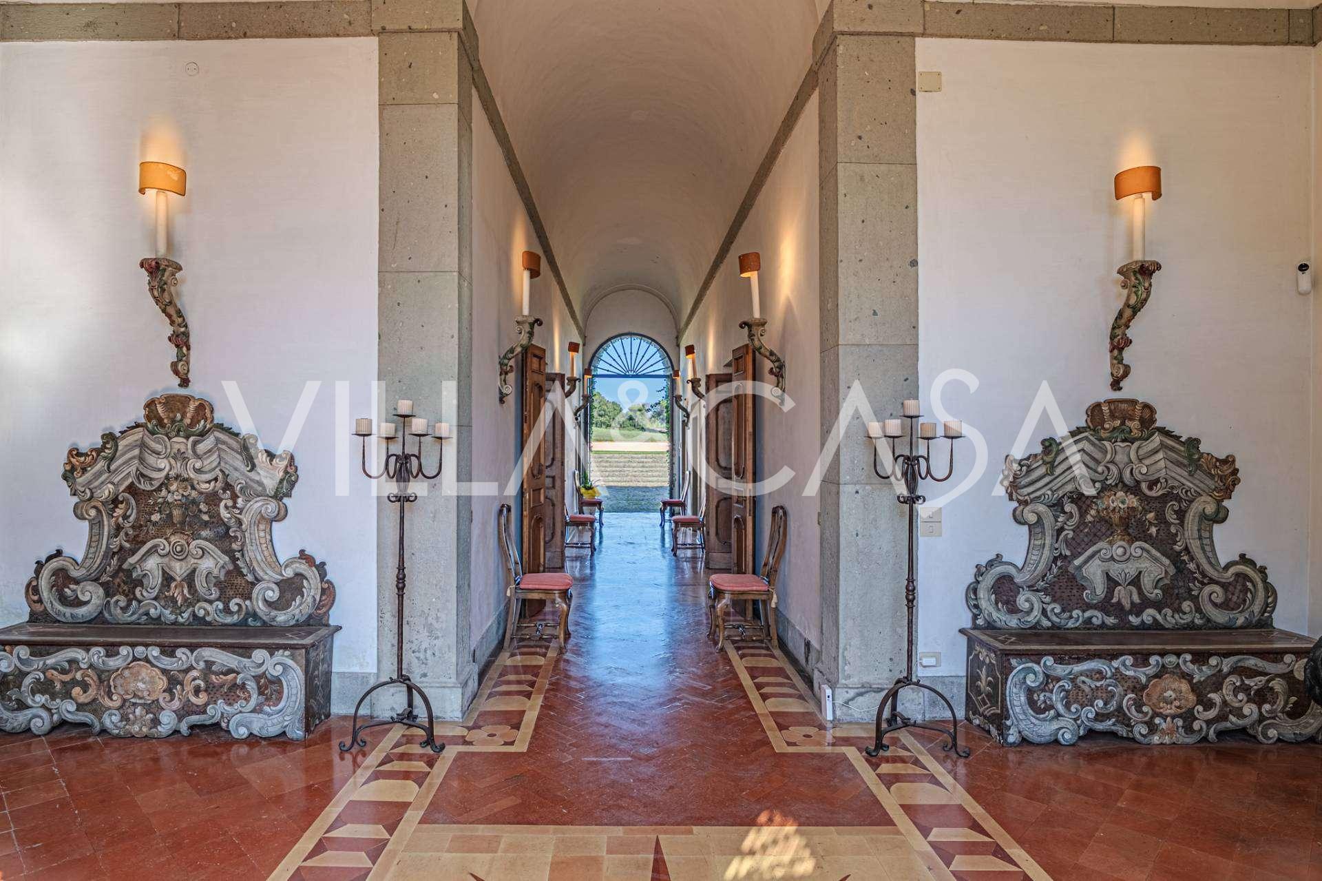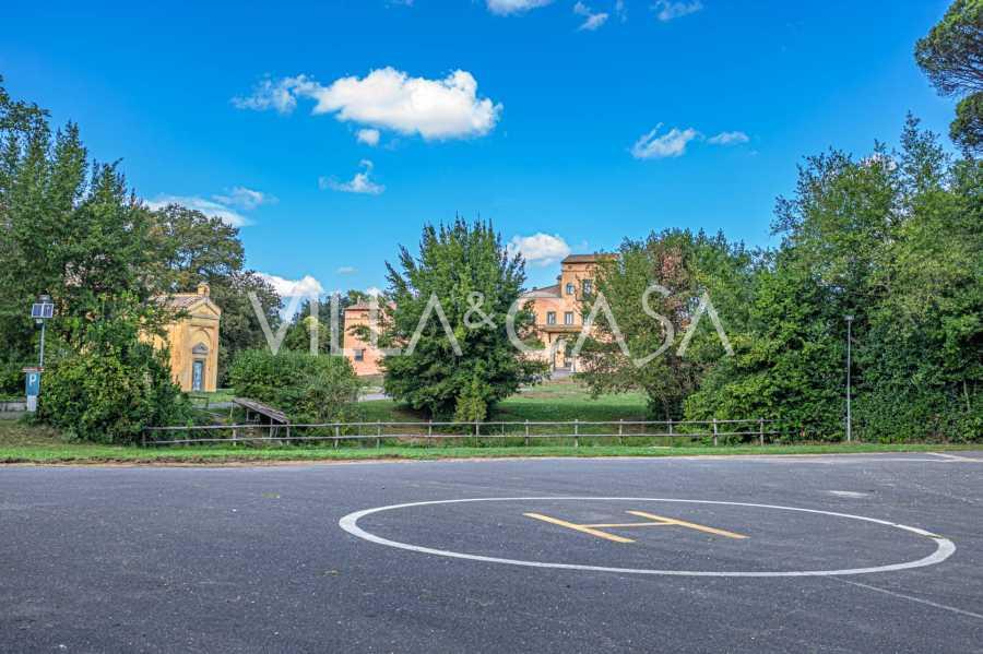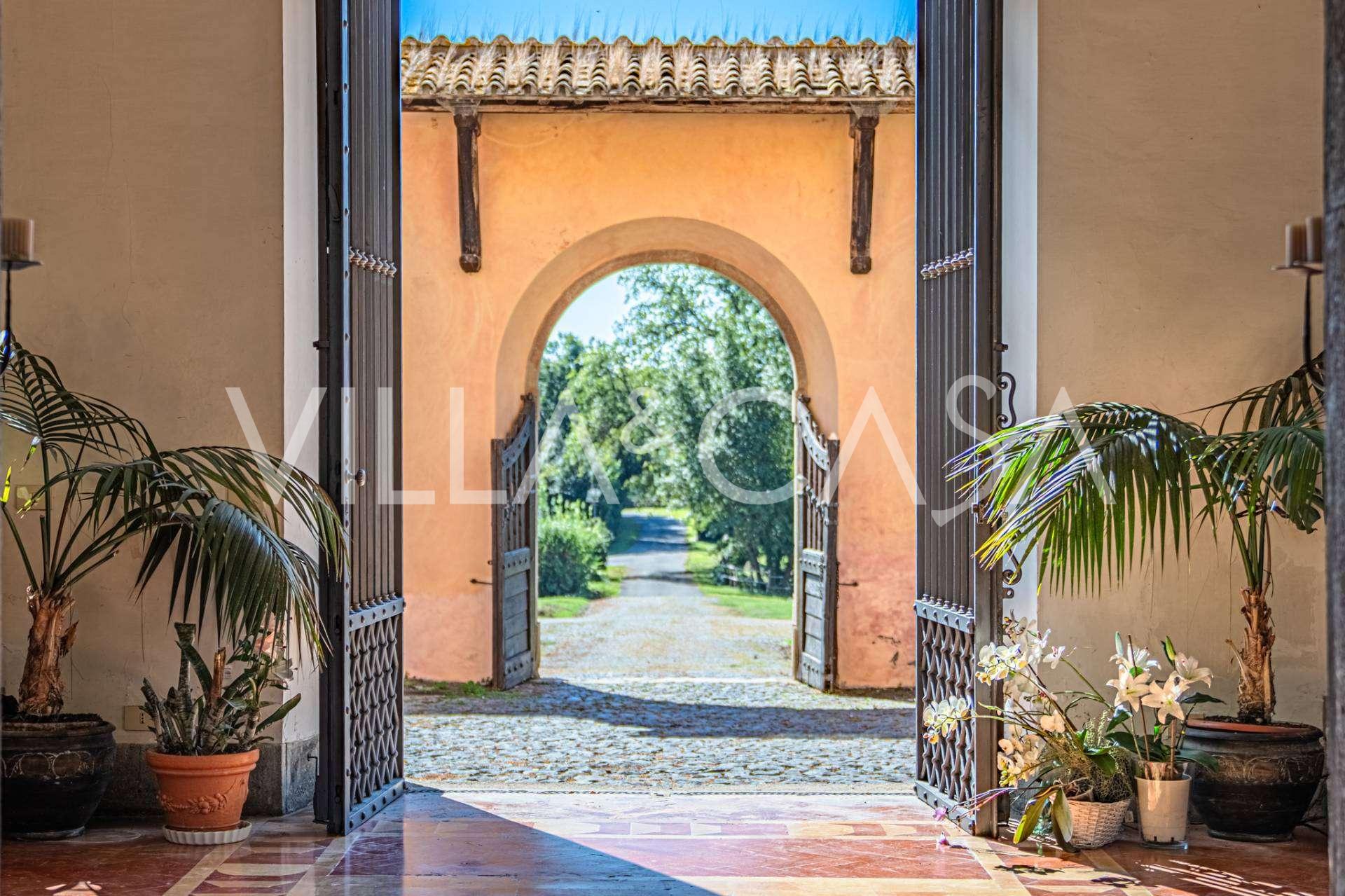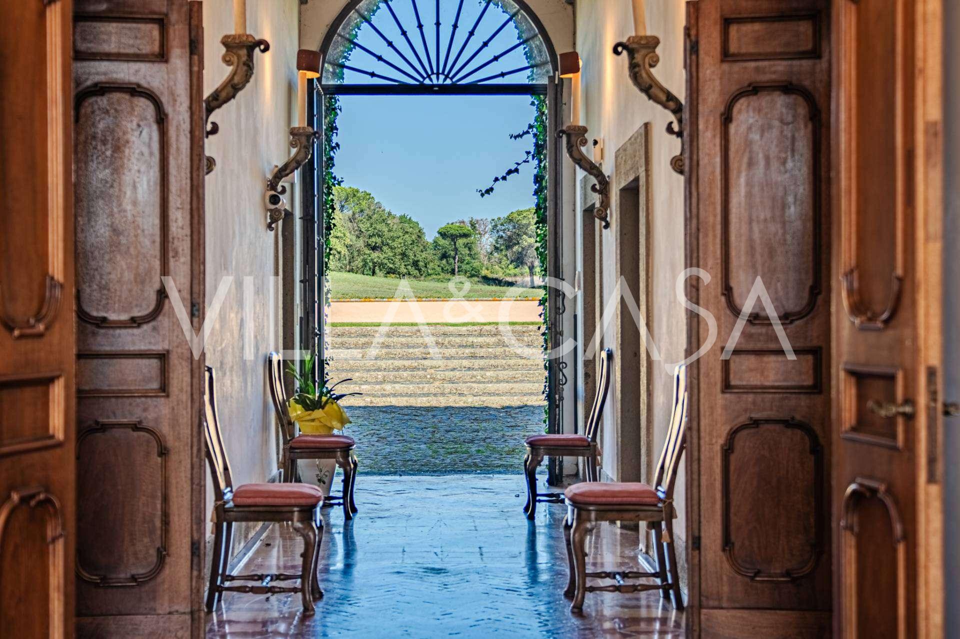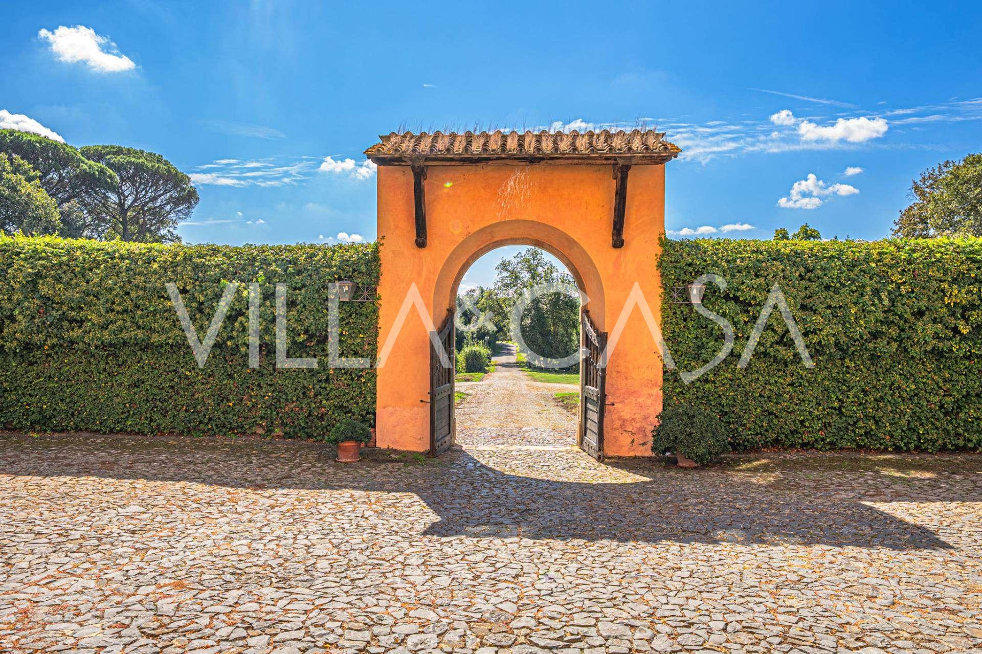 ローマから北へわずか20キロに位置するこの城は、30ヘクタールの手入れの行き届いた草原と古代の森林に囲まれ、自然との完全な調和と隠遁の雰囲気を作り出しています。ここでは、伝説の競走馬リボットが生まれました。馬術施設は国際的な最高水準で整備されており、23と25の馬房を持つ2つの厩舎には、鞍部屋、馬の手入れゾーン、スタッフ用の快適なアパートメントが備わっています。施設内には、屋内馬場、屋内カルーセル、広大な放牧地があり、トレーニングや競技に理想的です。城はヨーロッパで最も権威のあるゴルフクラブの一つに隣接しており、専用のヘリポートもあります。敷地内には古代エトルリアの洞窟があり、特別な魅力と歴史的価値を与えています。
