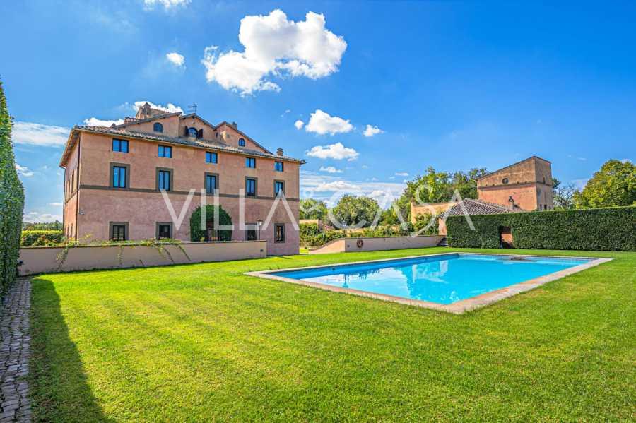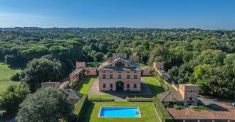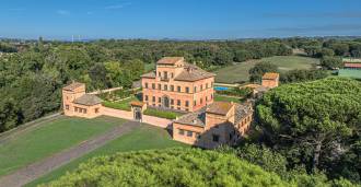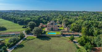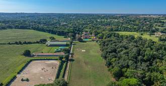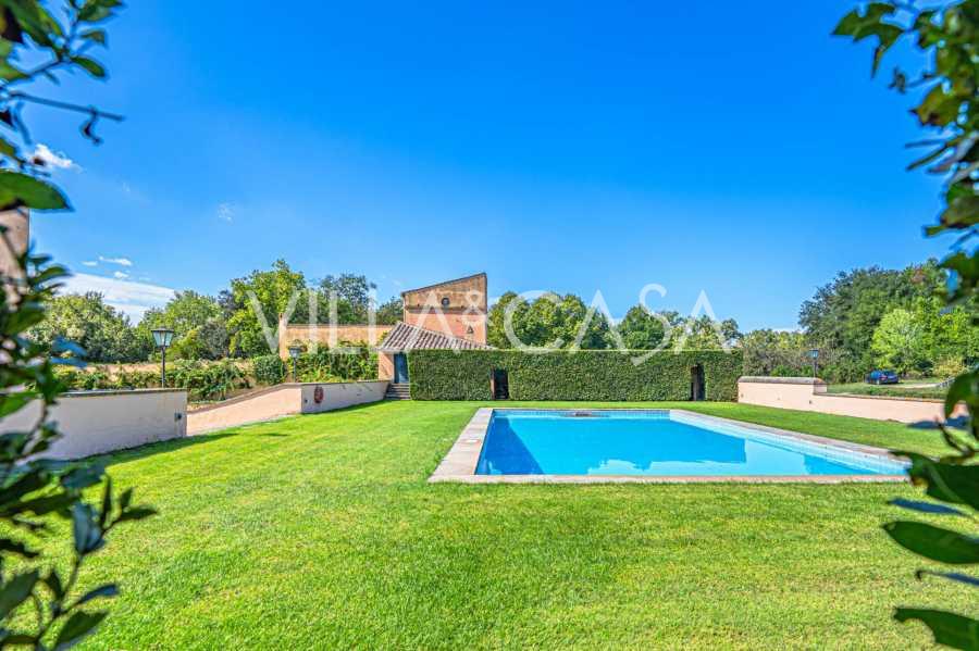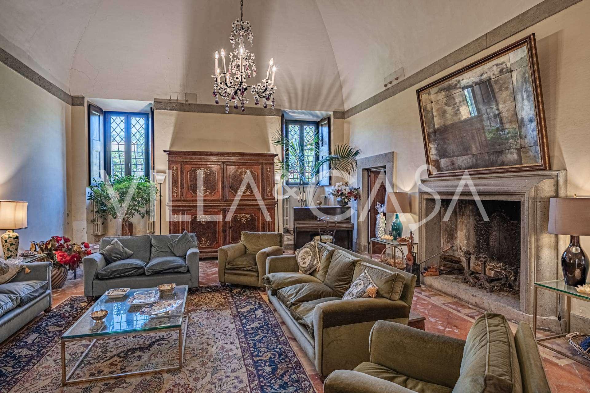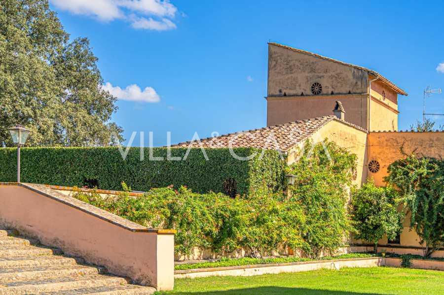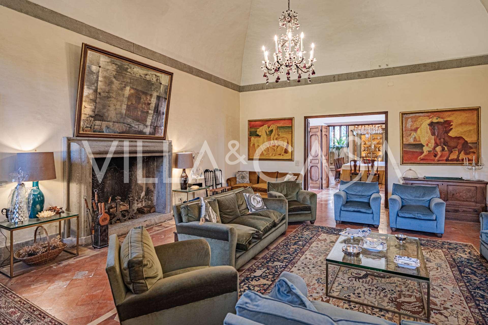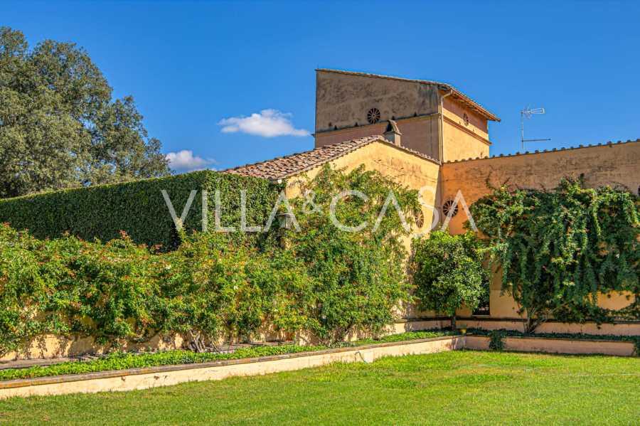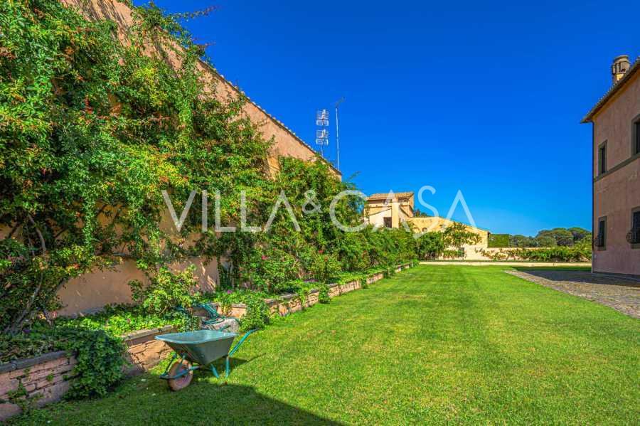 ローマから北へわずか20キロに位置するこの城は、30ヘクタールの手入れの行き届いた草原と古代の森林に囲まれ、自然との完全な調和と隠遁の雰囲気を作り出しています。ここでは、伝説の競走馬リボットが生まれました。馬術施設は国際的な最高水準で整備されており、23と25の馬房を持つ2つの厩舎には、鞍部屋、馬の手入れゾーン、スタッフ用の快適なアパートメントが備わっています。施設内には、屋内馬場、屋内カルーセル、広大な放牧地があり、トレーニングや競技に理想的です。城はヨーロッパで最も権威のあるゴルフクラブの一つに隣接しており、専用のヘリポートもあります。敷地内には古代エトルリアの洞窟があり、特別な魅力と歴史的価値を与えています。
