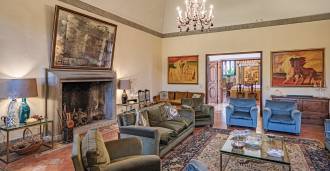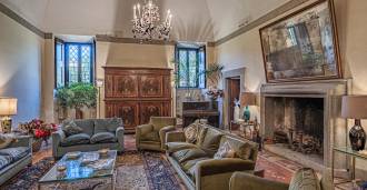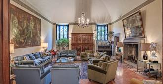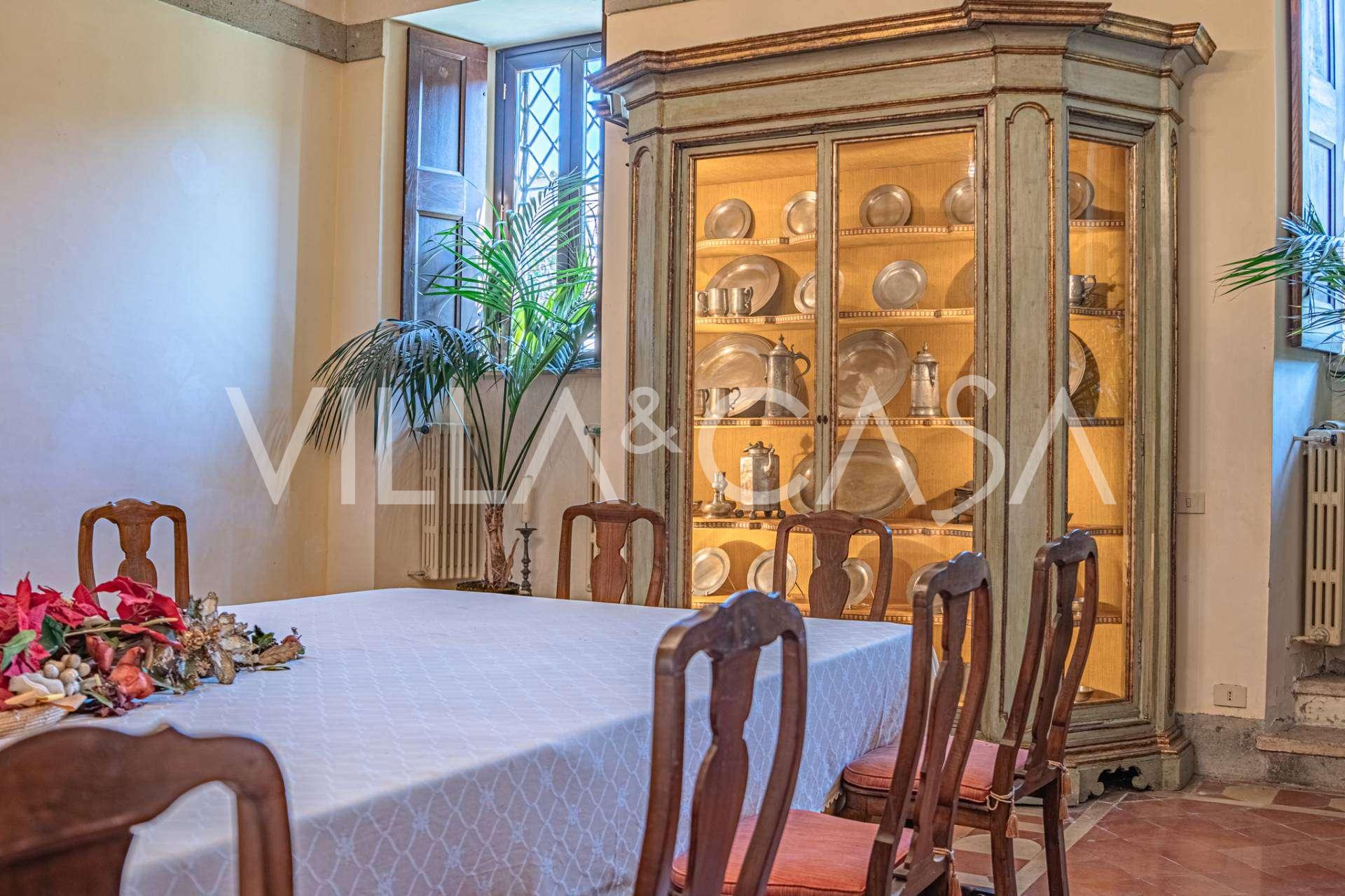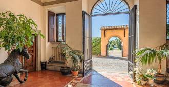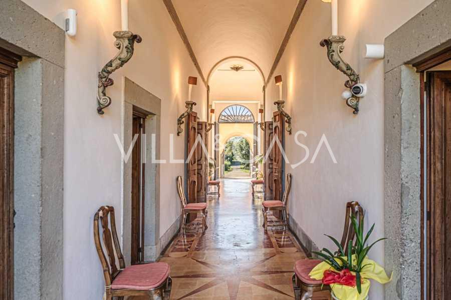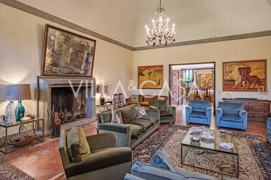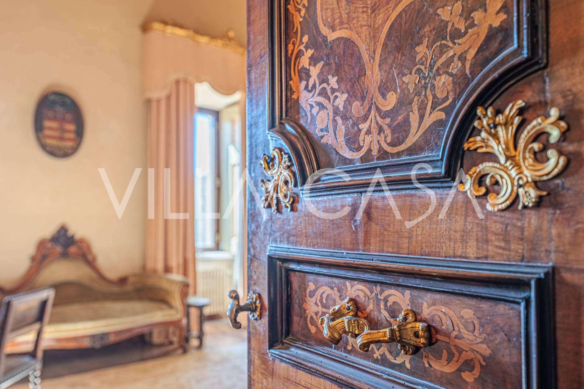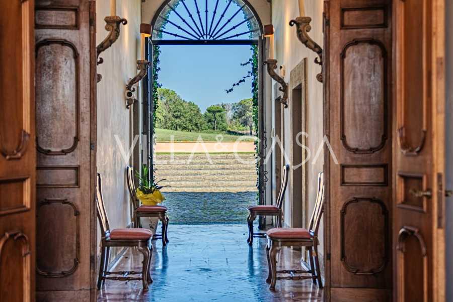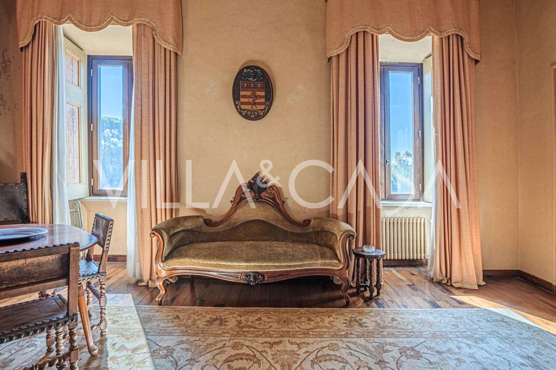 ローマから北へわずか20キロに位置するこの城は、30ヘクタールの手入れの行き届いた草原と古代の森林に囲まれ、自然との完全な調和と隠遁の雰囲気を作り出しています。ここでは、伝説の競走馬リボットが生まれました。馬術施設は国際的な最高水準で整備されており、23と25の馬房を持つ2つの厩舎には、鞍部屋、馬の手入れゾーン、スタッフ用の快適なアパートメントが備わっています。施設内には、屋内馬場、屋内カルーセル、広大な放牧地があり、トレーニングや競技に理想的です。城はヨーロッパで最も権威のあるゴルフクラブの一つに隣接しており、専用のヘリポートもあります。敷地内には古代エトルリアの洞窟があり、特別な魅力と歴史的価値を与えています。