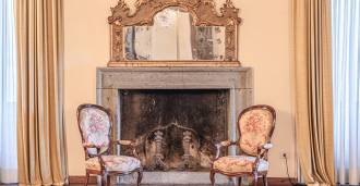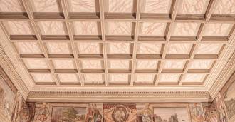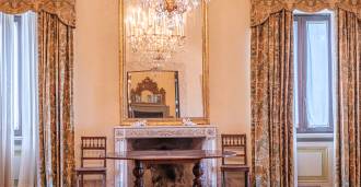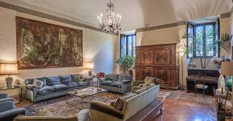 2階には天井画のある2つの公式サロン、2つの寝室、2つのバスルームがあります。