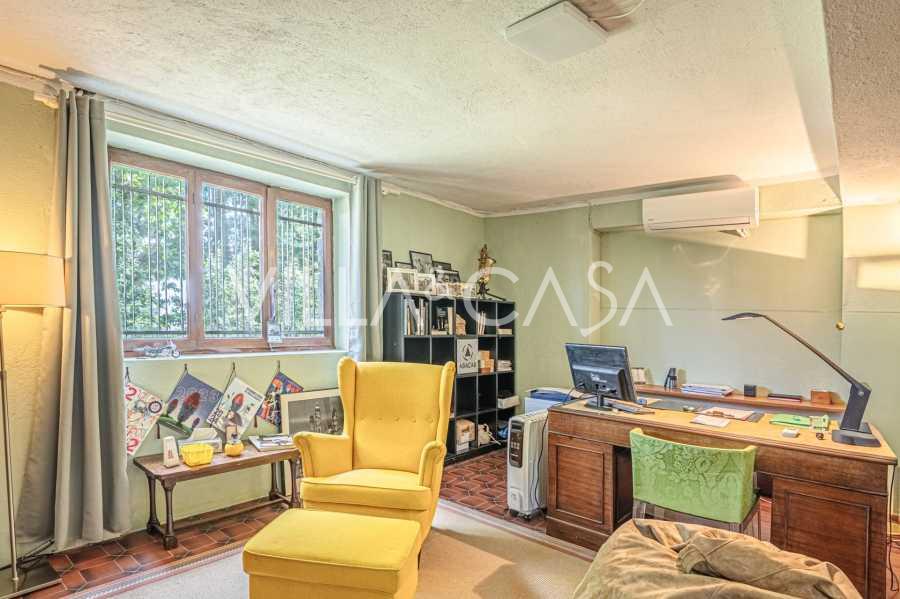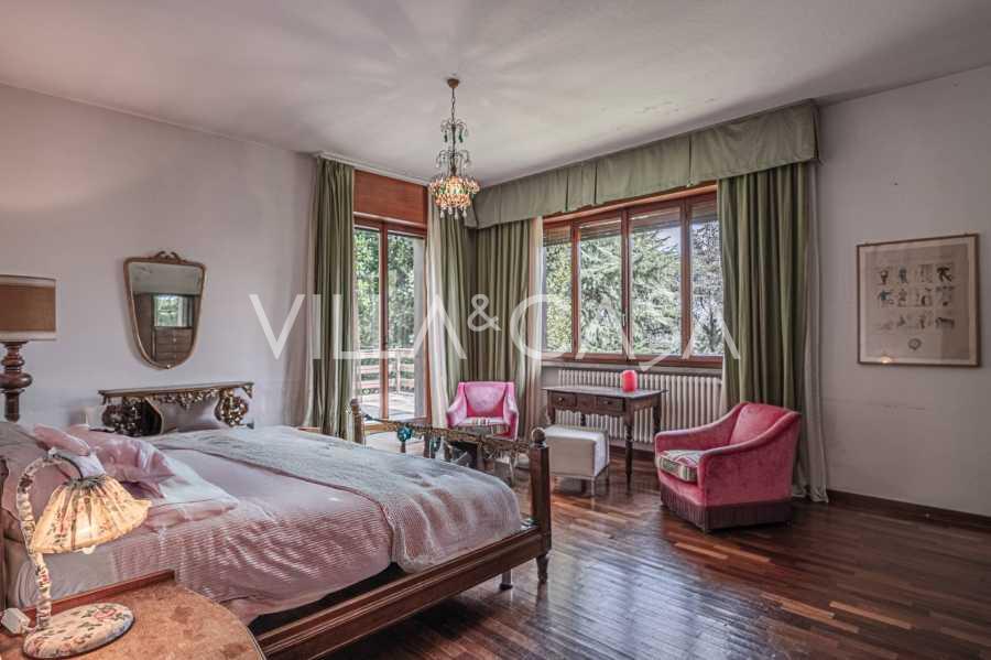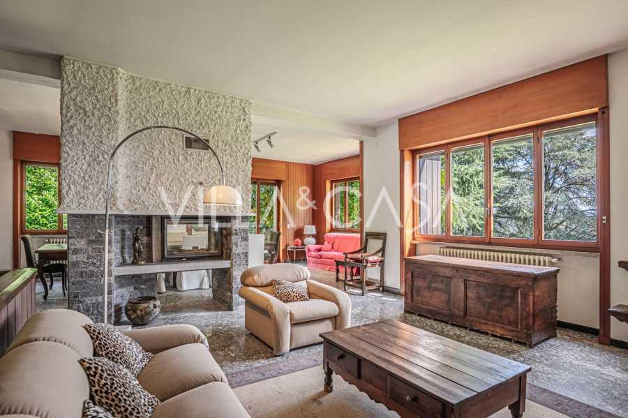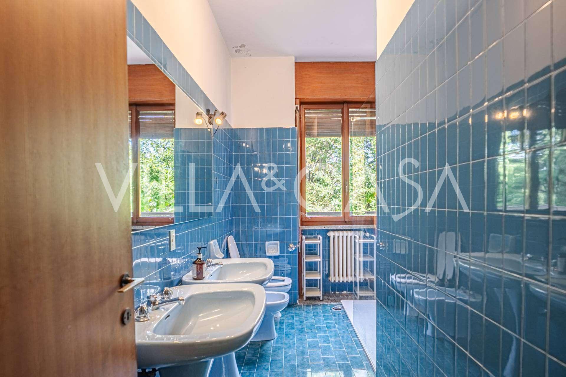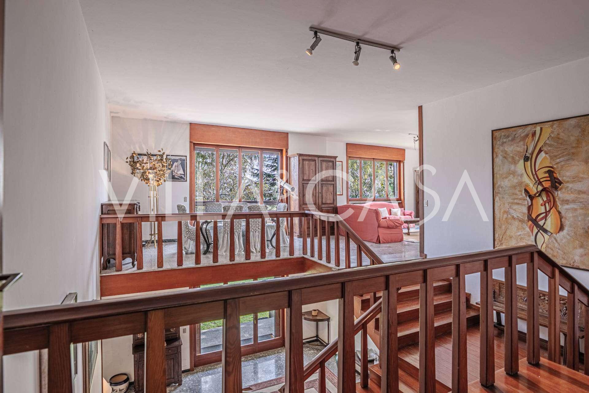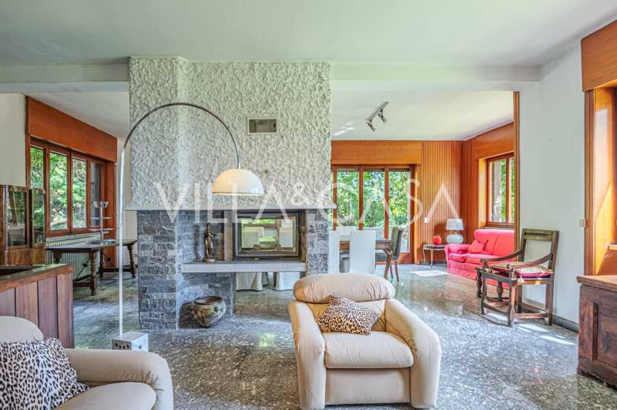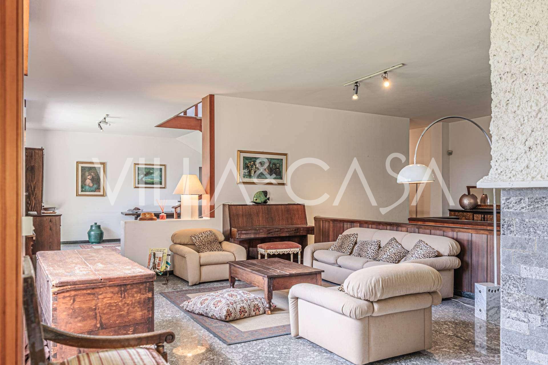 1960年代初頭に建てられたこのヴィラは、約4ヘクタールのプライベートパークの緑の中に佇み、完全なプライバシーと静けさを提供します。同時に、その立地は非常に便利で、高速道路の出口までわずか1キロメートル、ミラノや空港への迅速なアクセスを可能にし、アロナの絵画的な湖畔と湖自体までは車でわずか10分です。