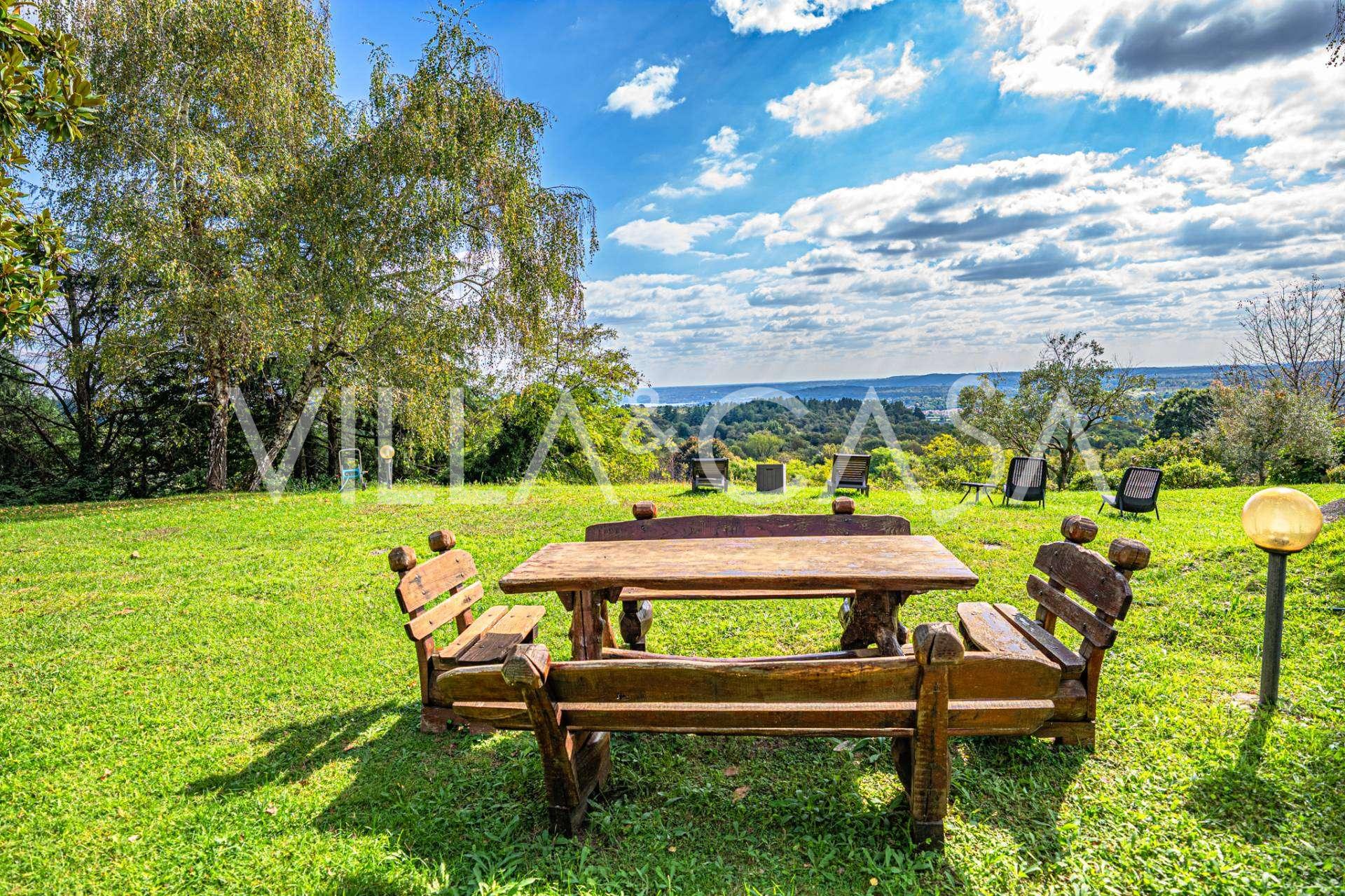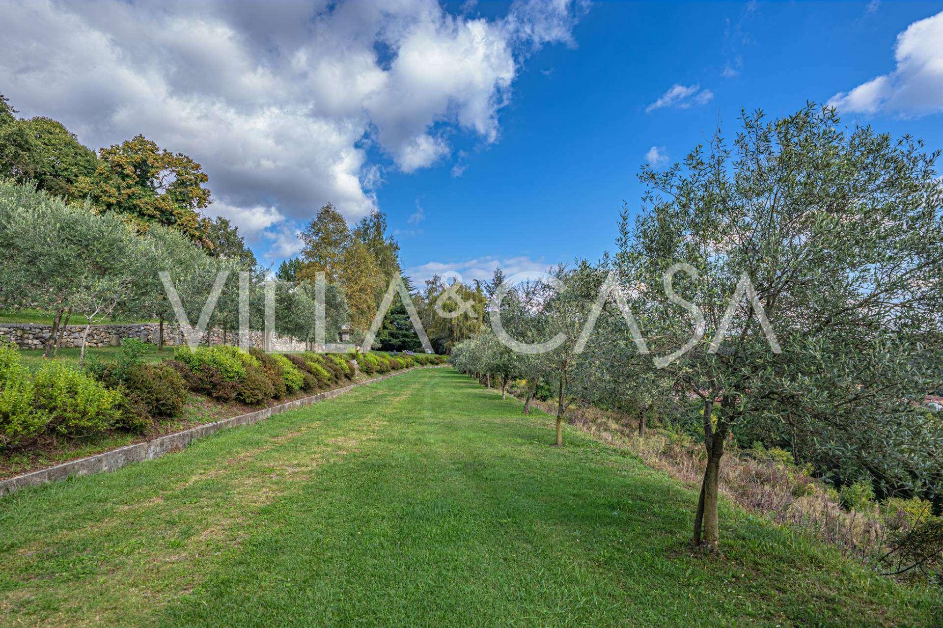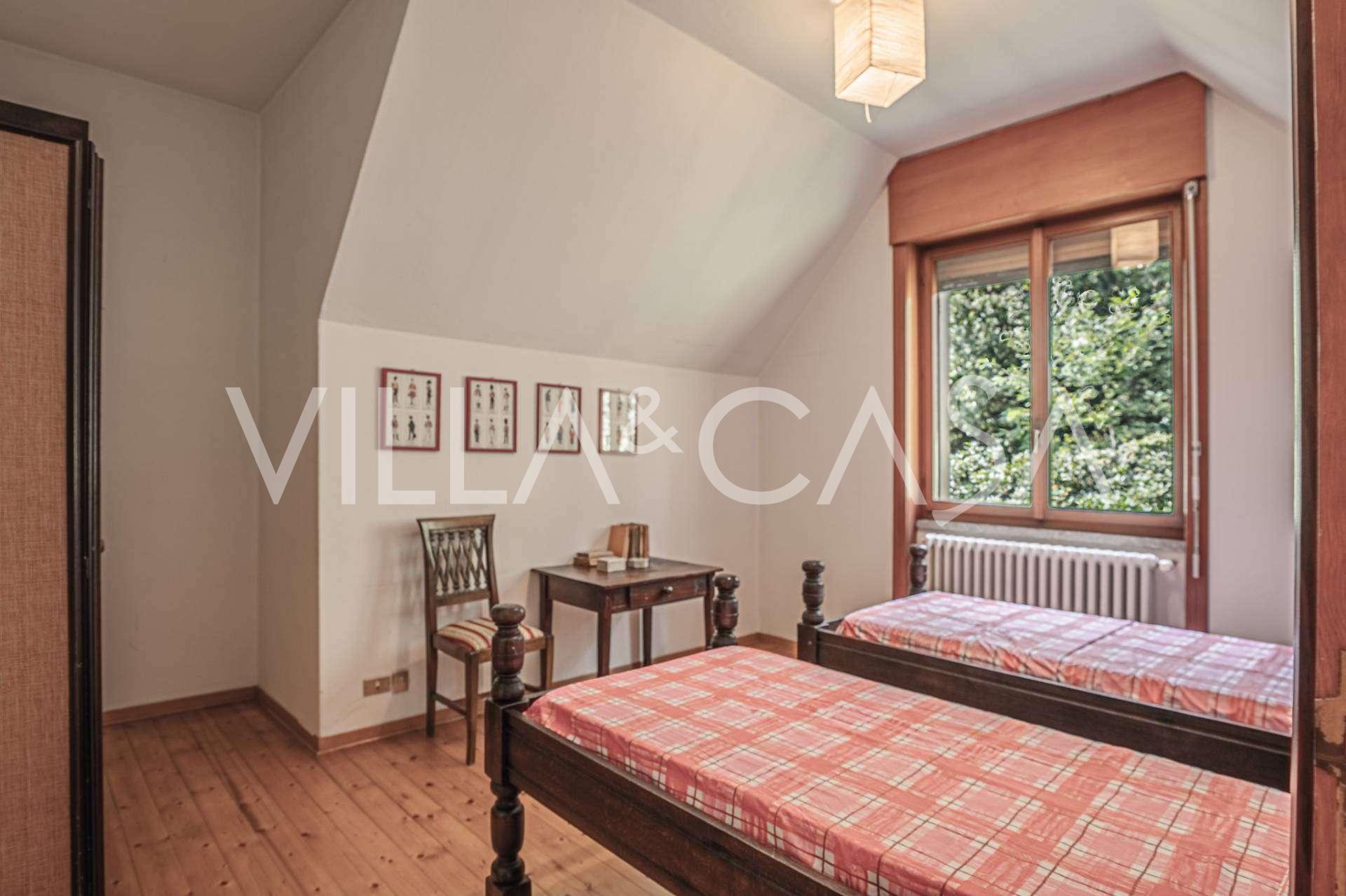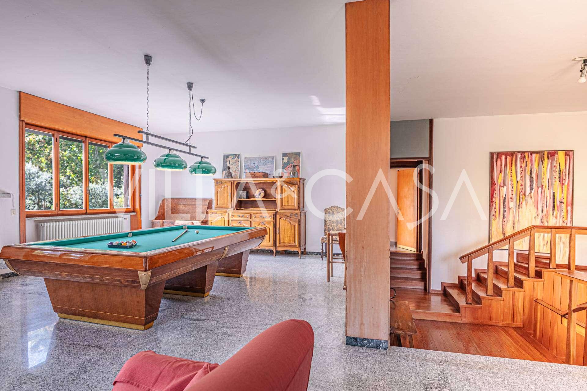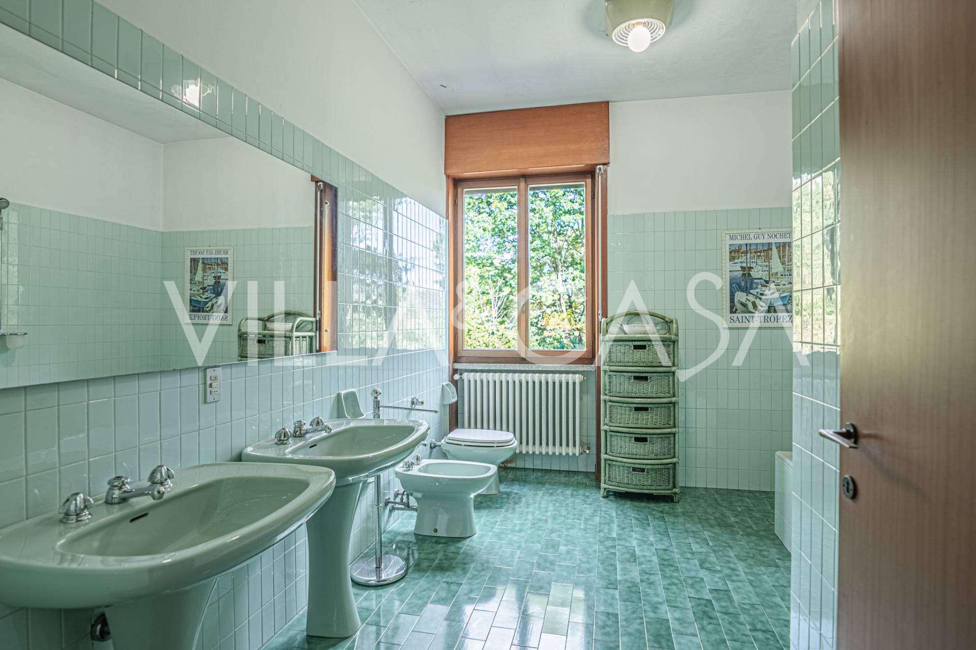 1960年代初頭に建てられたこのヴィラは、約4ヘクタールのプライベートパークの緑の中に佇み、完全なプライバシーと静けさを提供します。同時に、その立地は非常に便利で、高速道路の出口までわずか1キロメートル、ミラノや空港への迅速なアクセスを可能にし、アロナの絵画的な湖畔と湖自体までは車でわずか10分です。