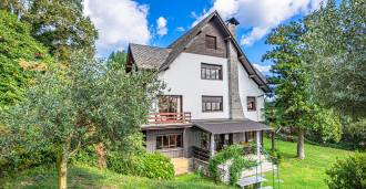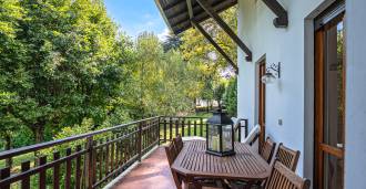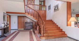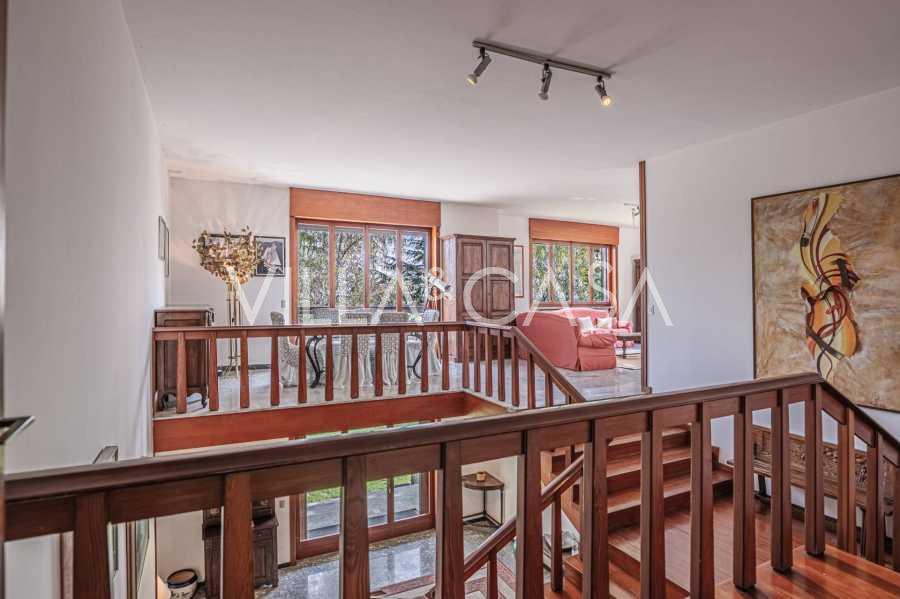 ヴィラは素晴らしい状態で、高品質の材料で建てられ、広々として明るく調和の取れたインテリアを持っています。ハリウッドのレジデンスにふさわしい印象的な木製の階段が大きなホールでゲストを迎えます。壮麗なリビングルームとダイニングルームはパノラマウィンドウから自前の公園の景色を見渡せ、洗練された快適さと高貴な静けさの雰囲気を作り出します。