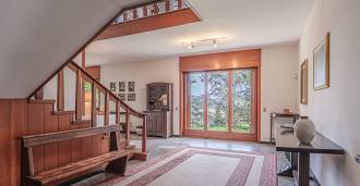 - 地上階(高い階):広々としたロビー、暖炉付きのリビングルーム、もう一つの暖炉付きリビングルームとダイニングエリア、キッチン、ゲスト用トイレ、ランドリー。