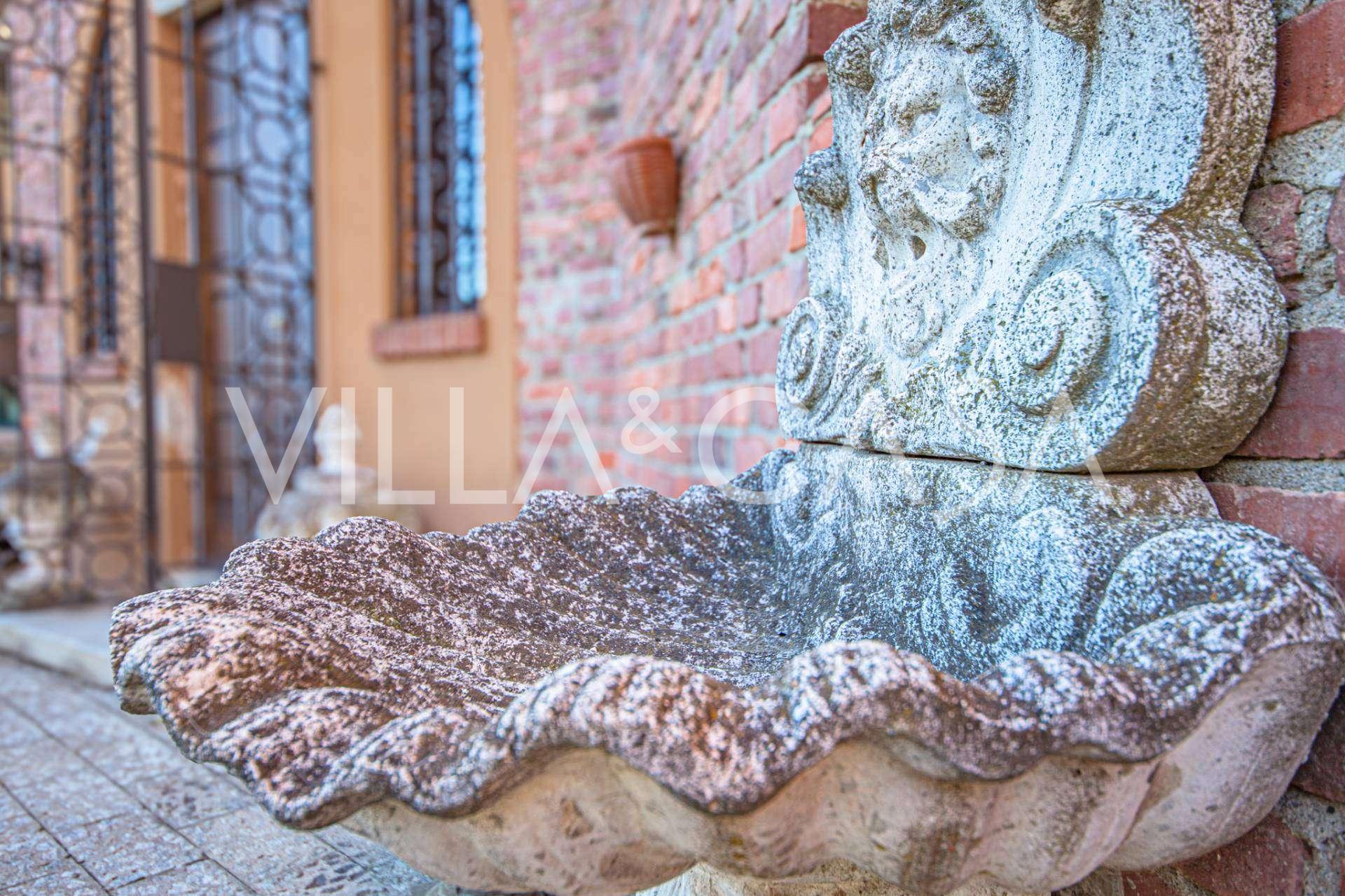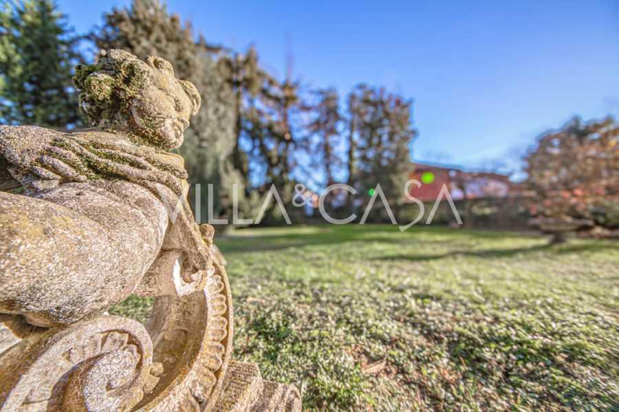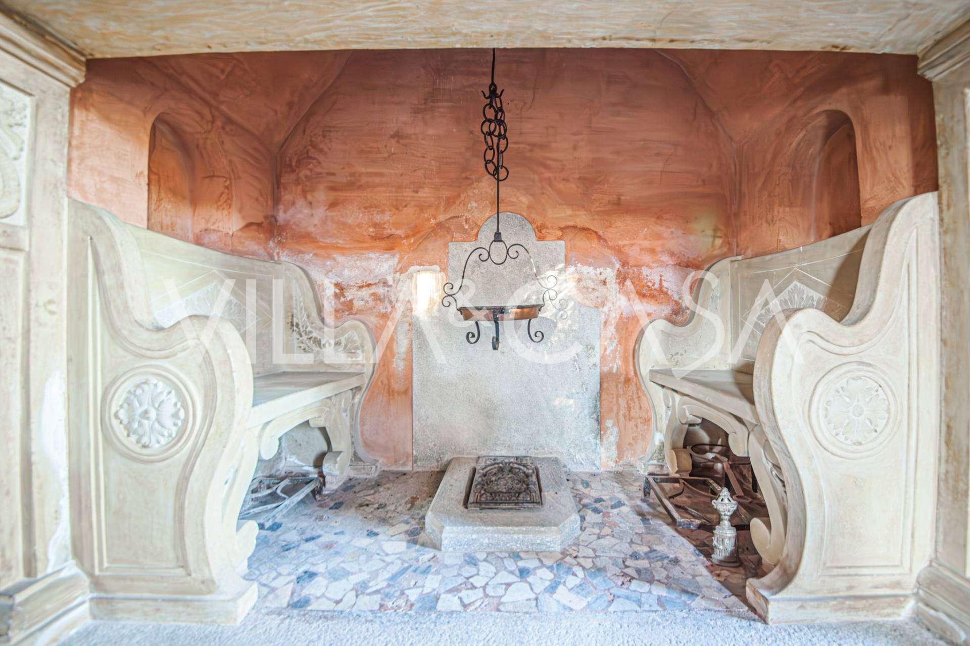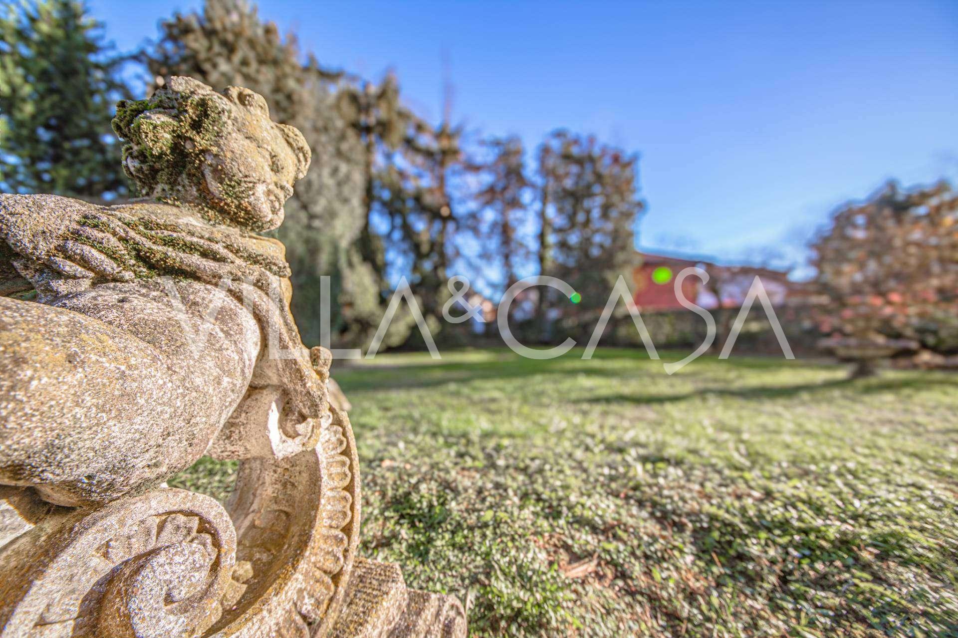 静寂と緑に囲まれた城は、手入れの行き届いた公園に位置し、美しい花壇や高い木々で飾られた平坦な庭が、安らぎと調和の雰囲気を作り出しています。庭には広々としたエレガントなパビリオンがあり、夏の休暇や屋外でのフォーマルなレセプションに最適です。