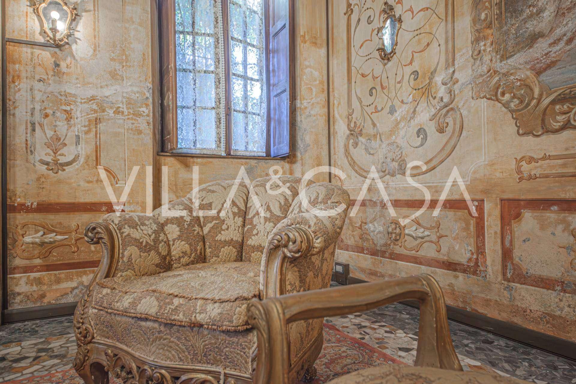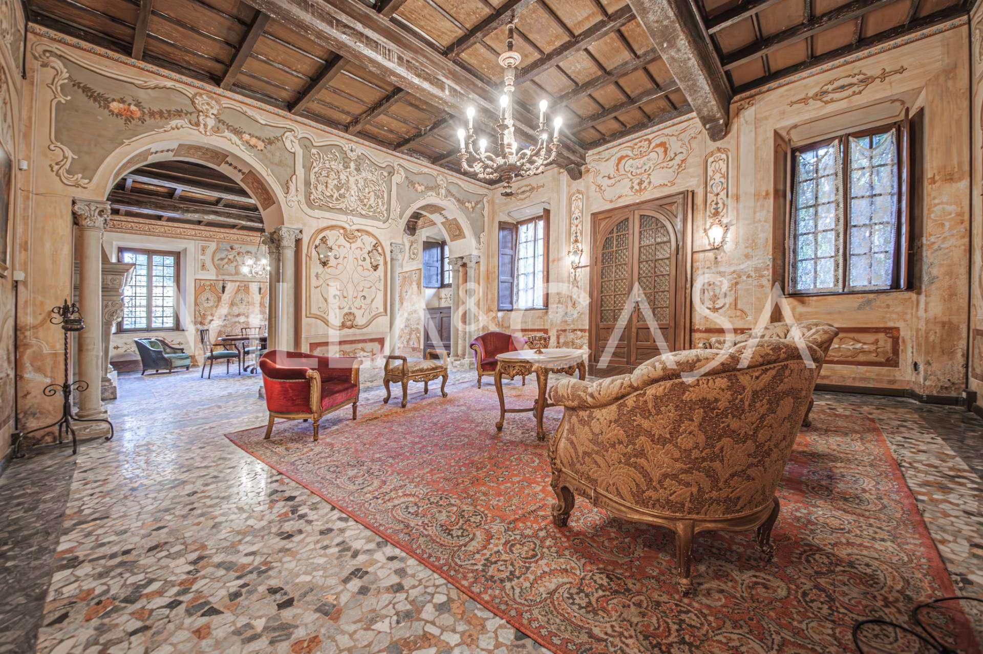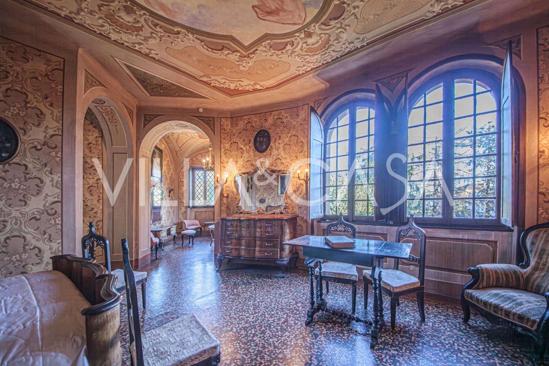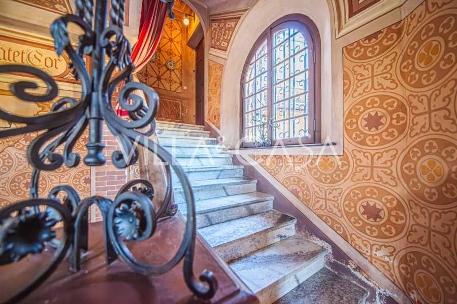 静寂と緑に囲まれた城は、手入れの行き届いた公園に位置し、美しい花壇や高い木々で飾られた平坦な庭が、安らぎと調和の雰囲気を作り出しています。庭には広々としたエレガントなパビリオンがあり、夏の休暇や屋外でのフォーマルなレセプションに最適です。