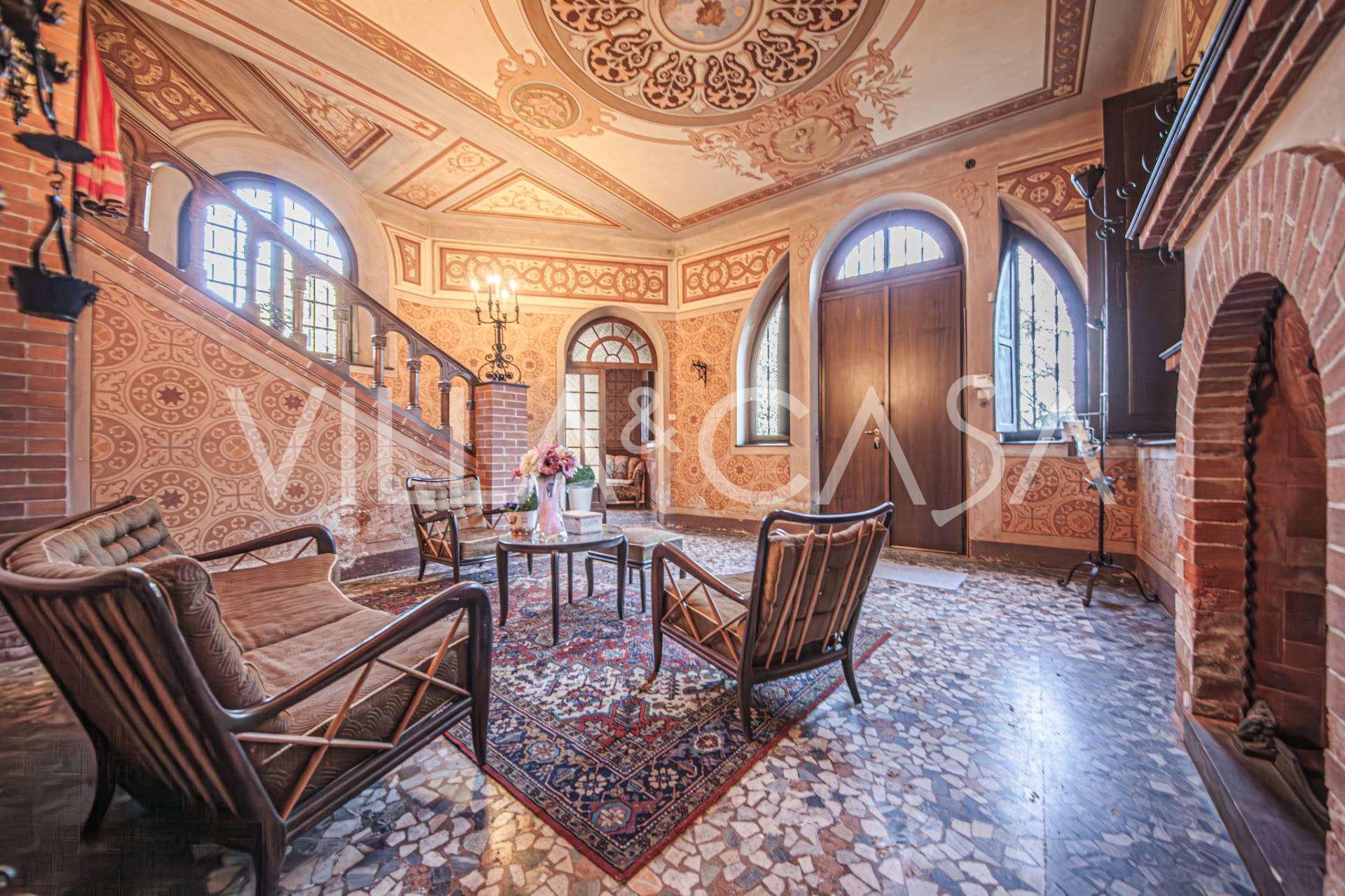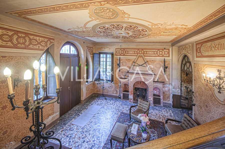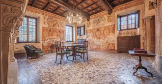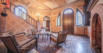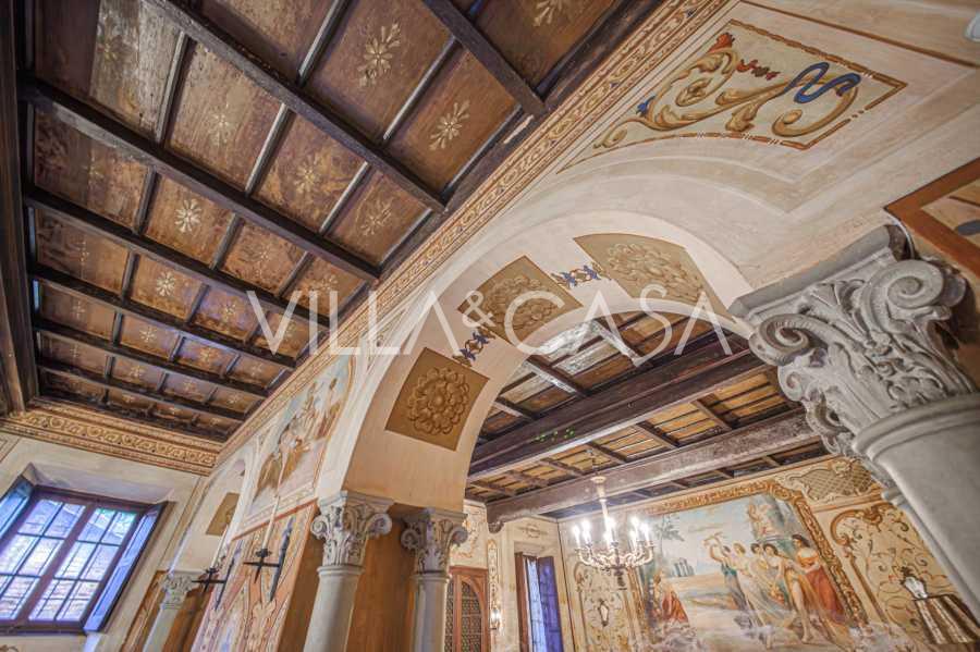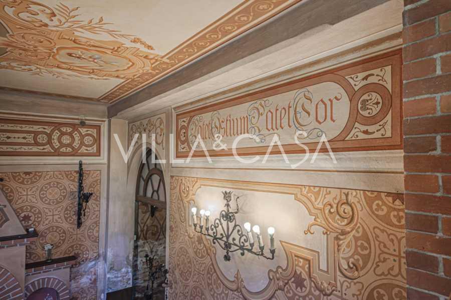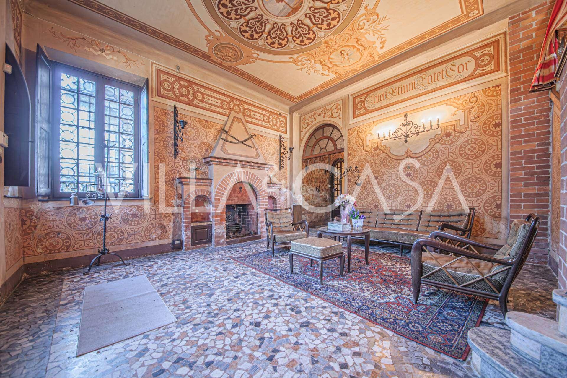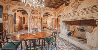 城の仕上げは洗練されたクラシックスタイルで、天然木、オリジナルのフレスコ画、レンガ造り、テラッツォ、鍛鉄が、古いピエモンテの邸宅の精神と雰囲気を反映する洗練された調和を生み出しています。