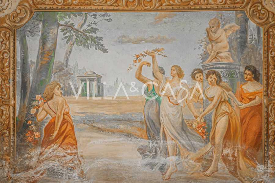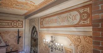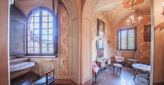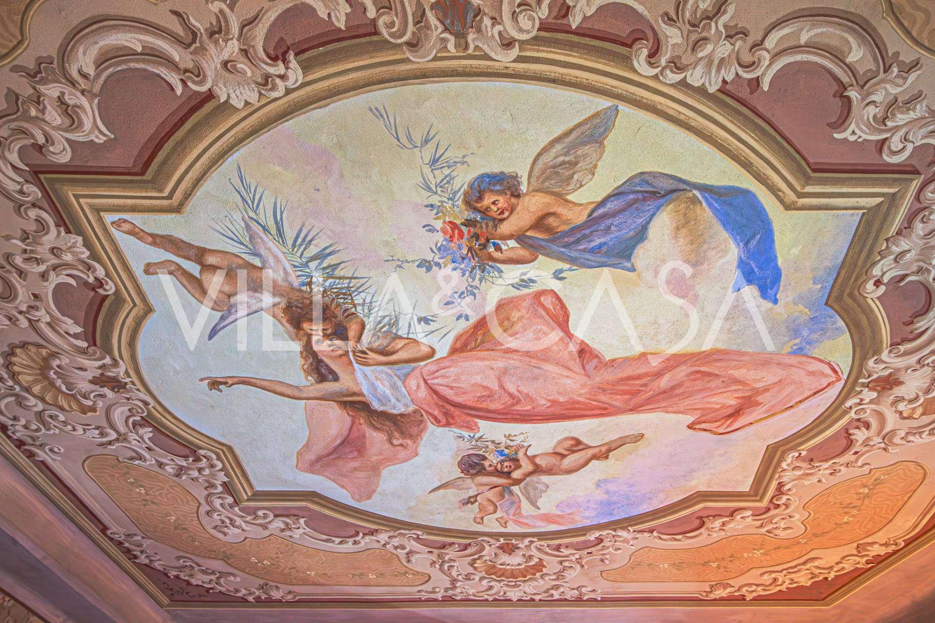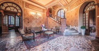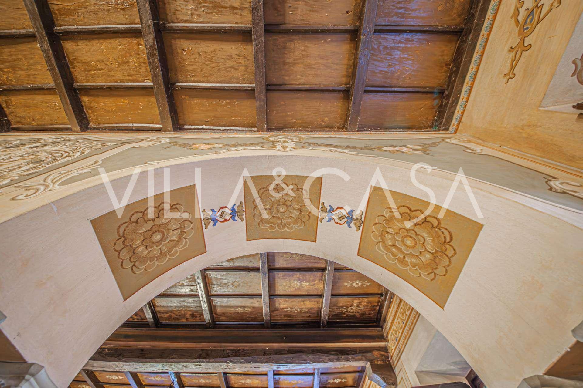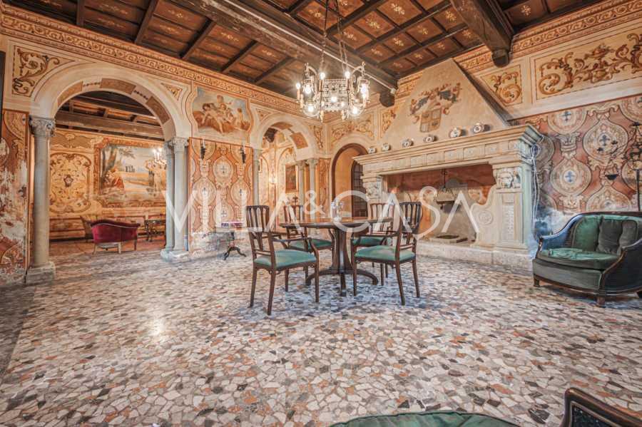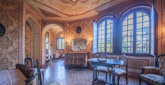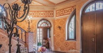 城の仕上げは洗練されたクラシックスタイルで、天然木、オリジナルのフレスコ画、レンガ造り、テラッツォ、鍛鉄が、古いピエモンテの邸宅の精神と雰囲気を反映する洗練された調和を生み出しています。